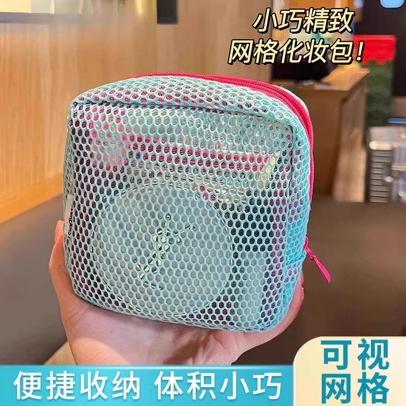 多巴胺豆腐包迷你网纱便携旅行洗漱化妆品收纳包补妆包网格杂物包