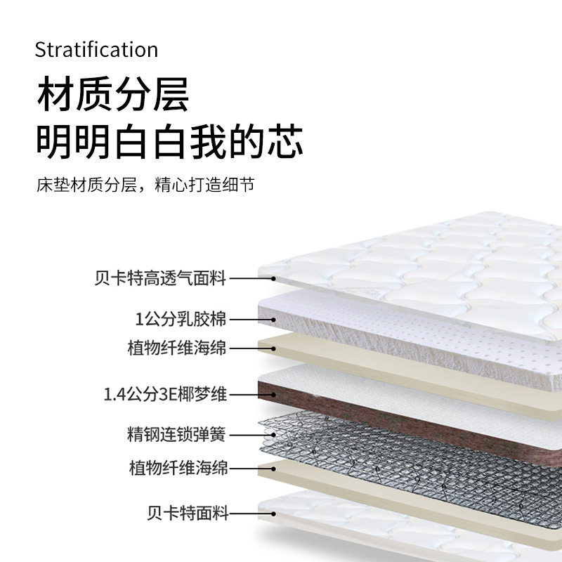 卧虎弹簧床垫天然乳胶椰棕席梦思床垫1.5米1.8m家用硬垫爱路威M-3