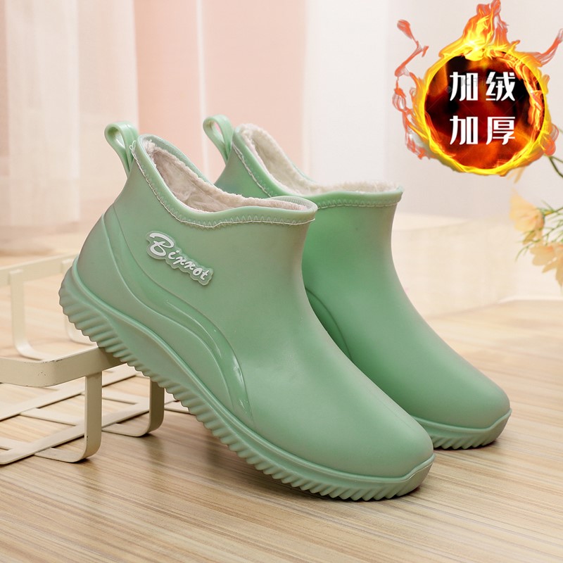 加绒雨鞋女款甜美外穿短筒雨靴防滑耐磨厨房工作胶鞋骑手成人水鞋