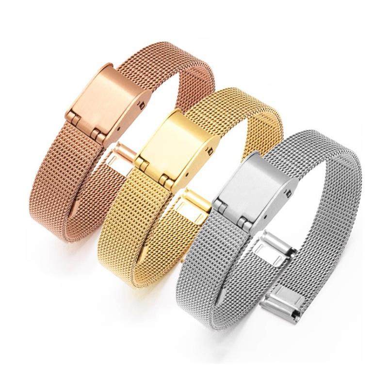 原装代用小绿表真皮手表带女米兰尼斯钢带10mm适配阿玛尼天王DW小