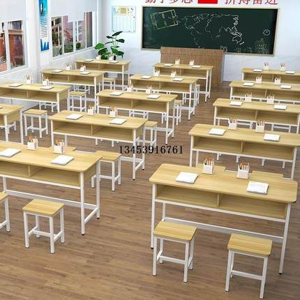 学生课桌椅双层带抽屉课桌补习班辅导单人双人三人位会议培训课桌