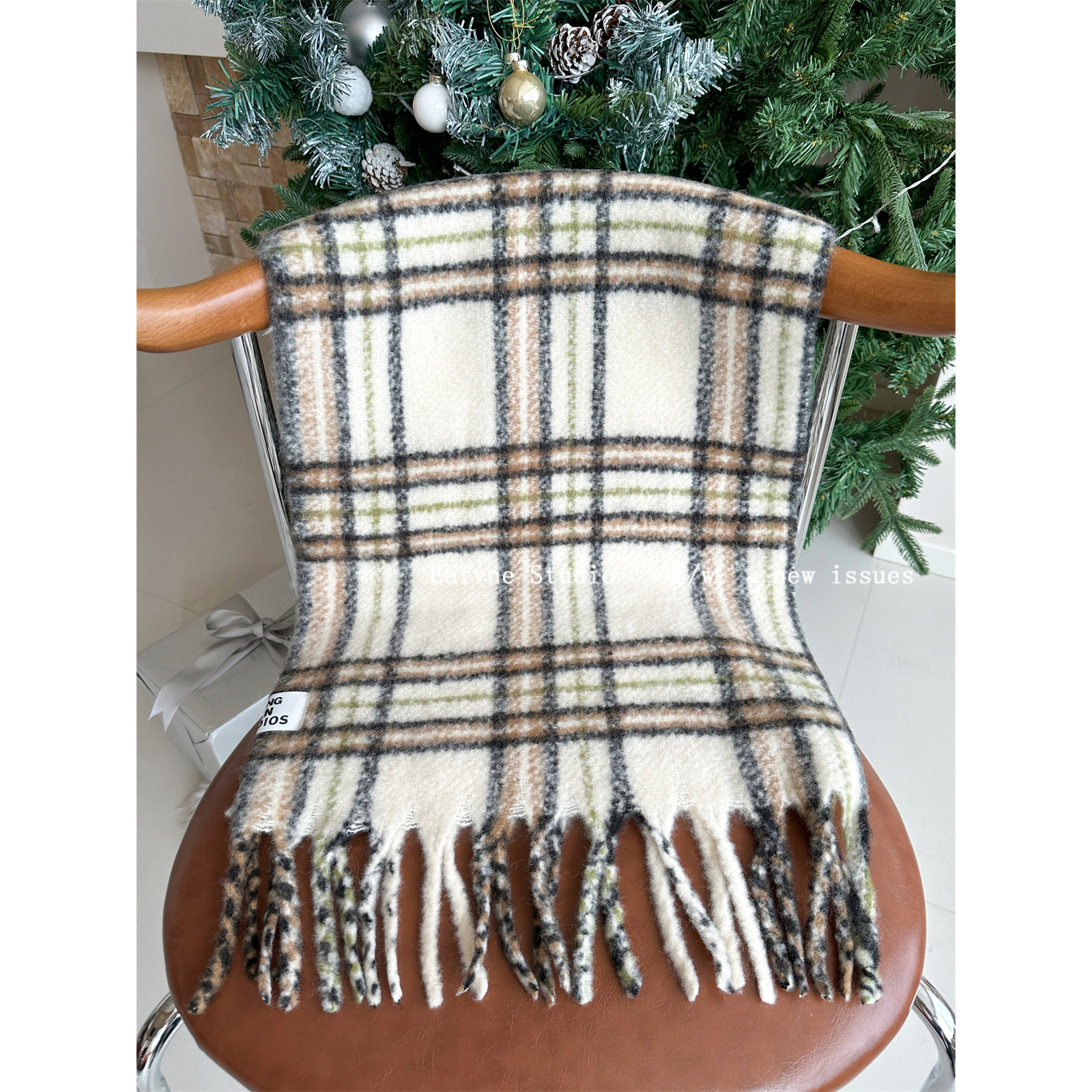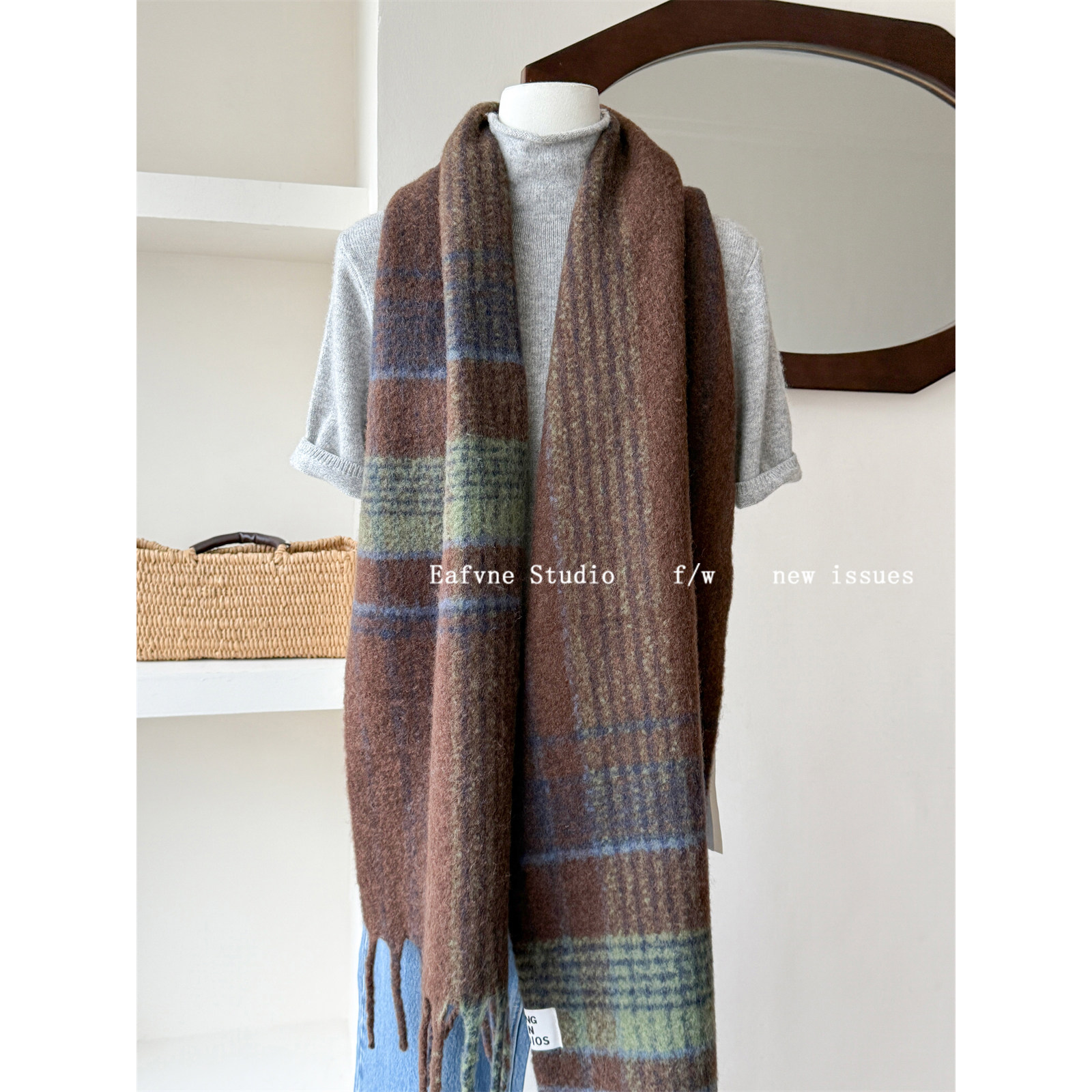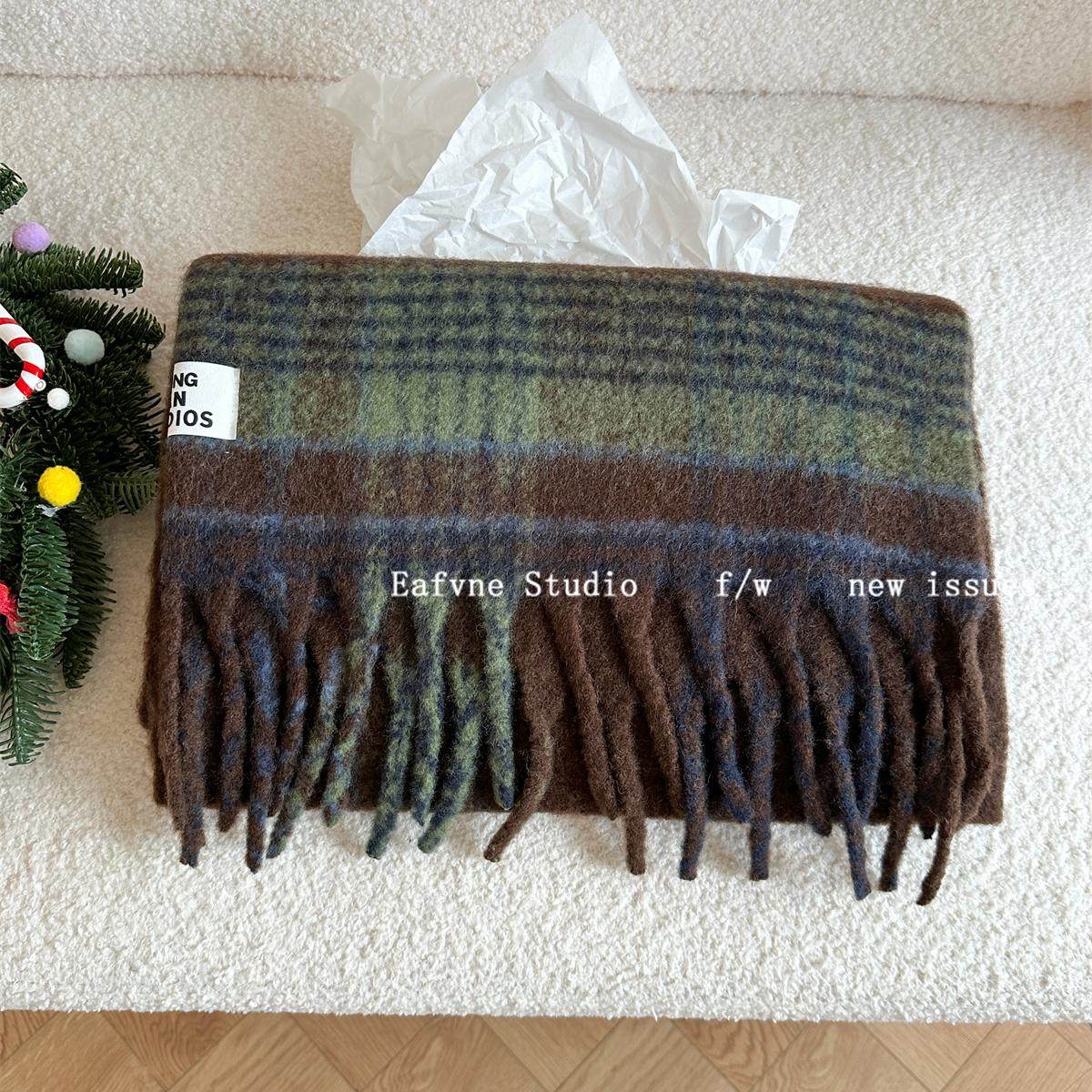 含羊毛格子围巾女冬季复古马海毛