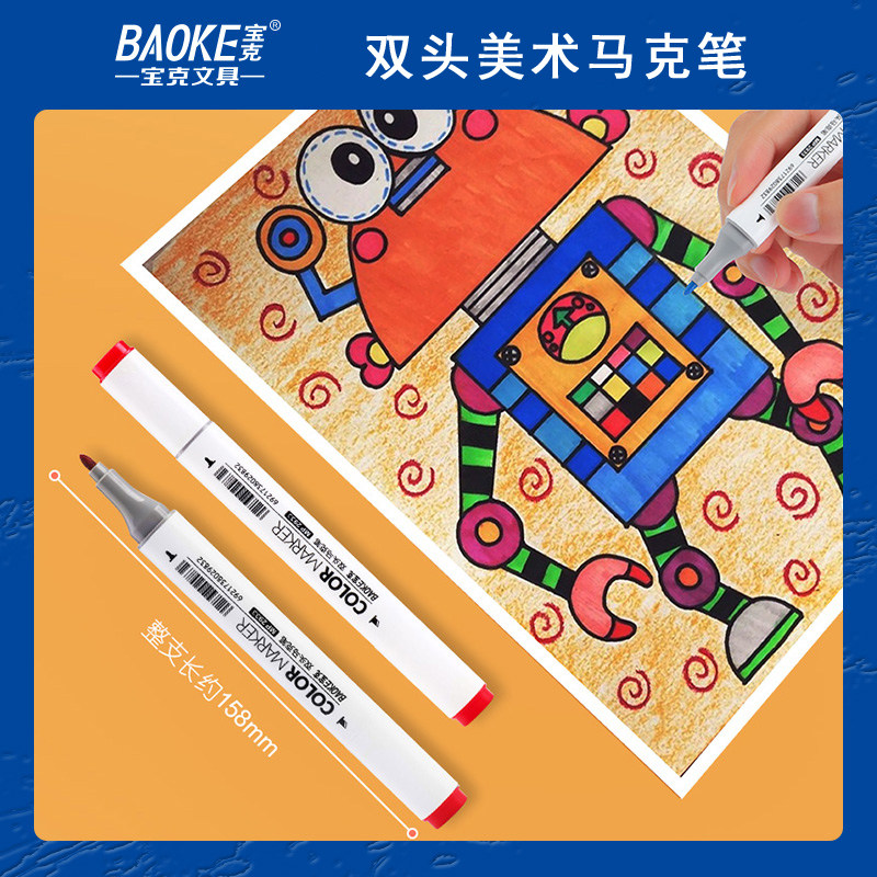 宝克马克笔水彩笔绘画笔双头速干水性学生美术涂鸦漫画彩色马克笔