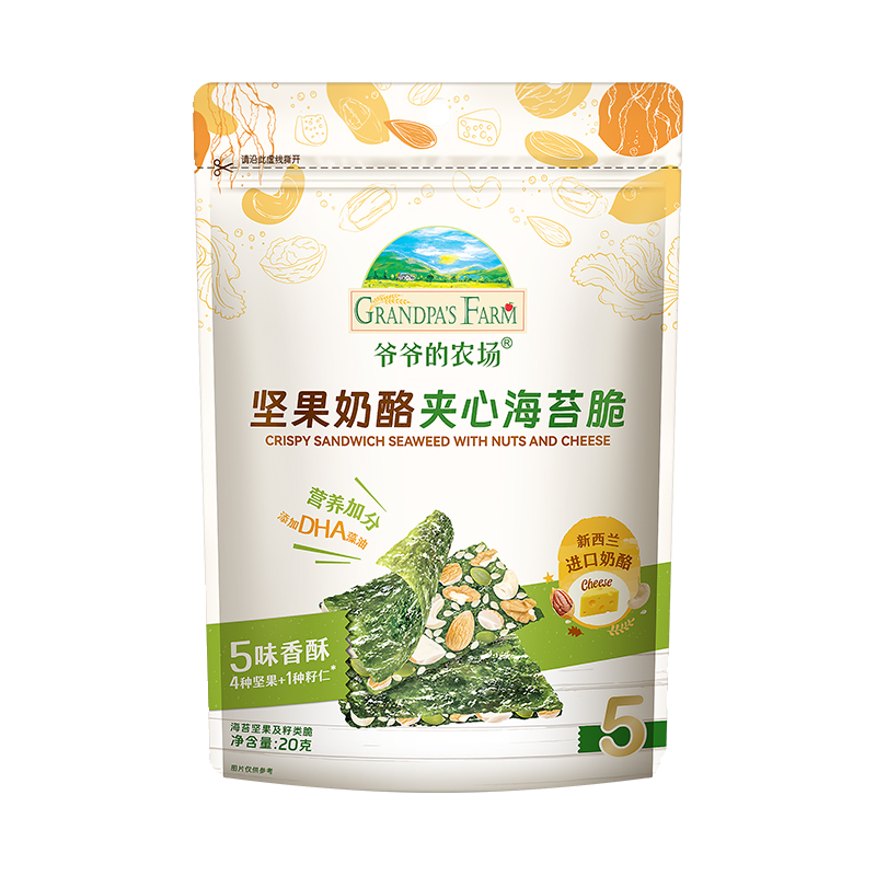 爷爷的农场宝宝坚果奶酪夹心海苔脆儿童小零食无添加盐非婴儿辅食