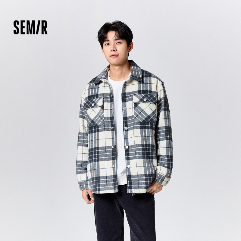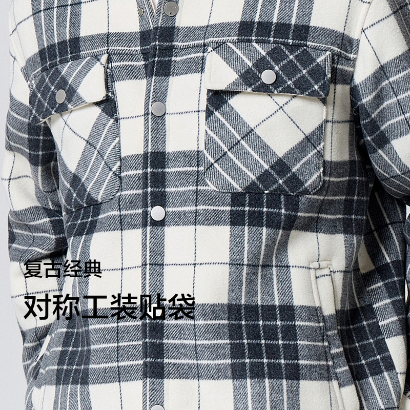 森马毛呢外套男冬季短款呢大衣不规则衬衫式翻领上衣复古时尚百搭