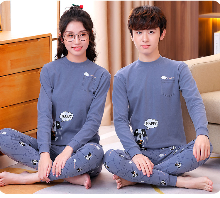 男孩女童初中高中学生秋衣秋裤套装100%纯棉中领全棉毛衫线衣线裤