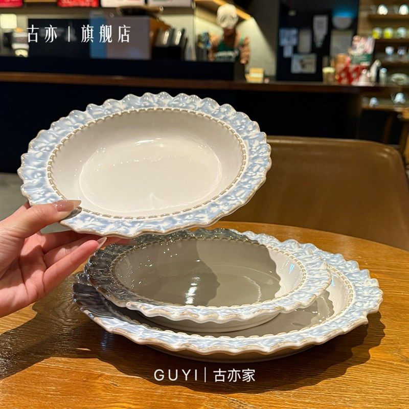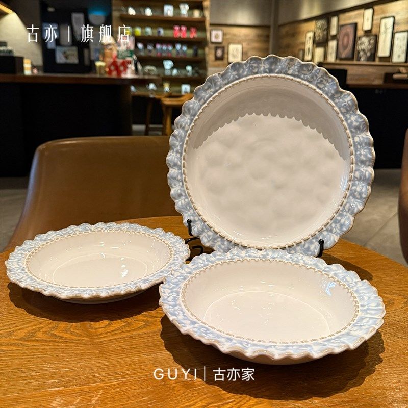 烟蓝被美晕袅!复古釉下彩陶瓷盘西餐盘甜品盘T菜盘早餐盘汤盘