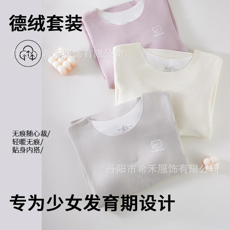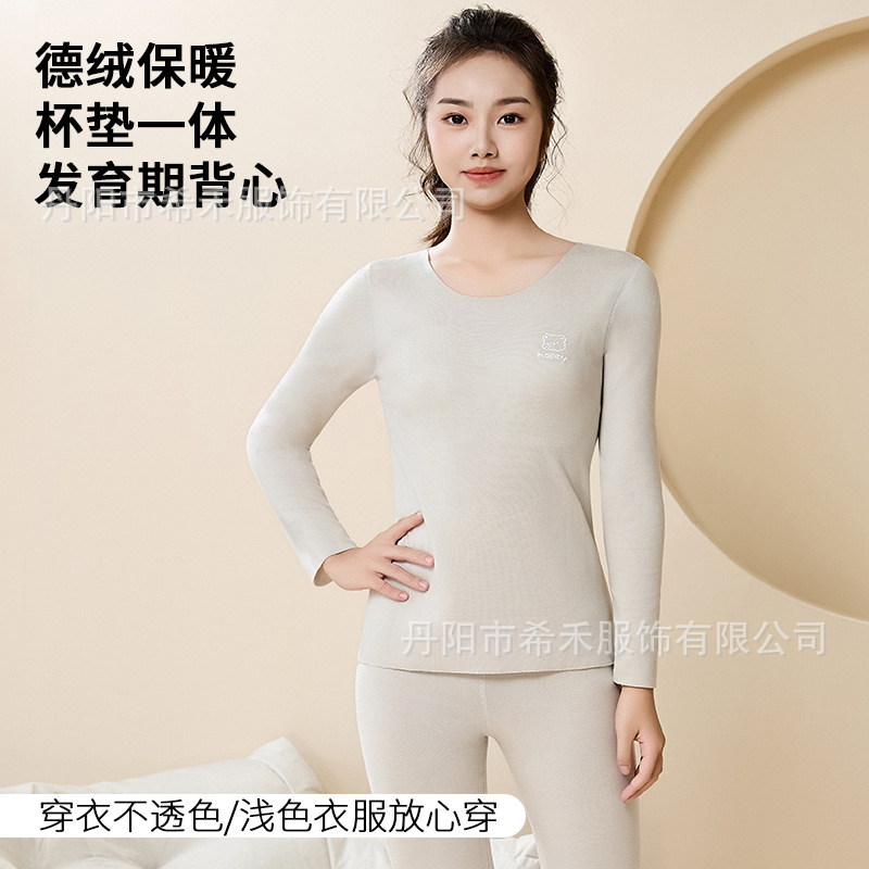 童德绒保暖内衣套装中大童带胸垫秋冬季加绒发热打底秋衣秋裤