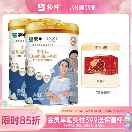 蒙牛中老年低脂高钙高纤维奶粉800g*2含膳食纤维营养牛奶粉送礼