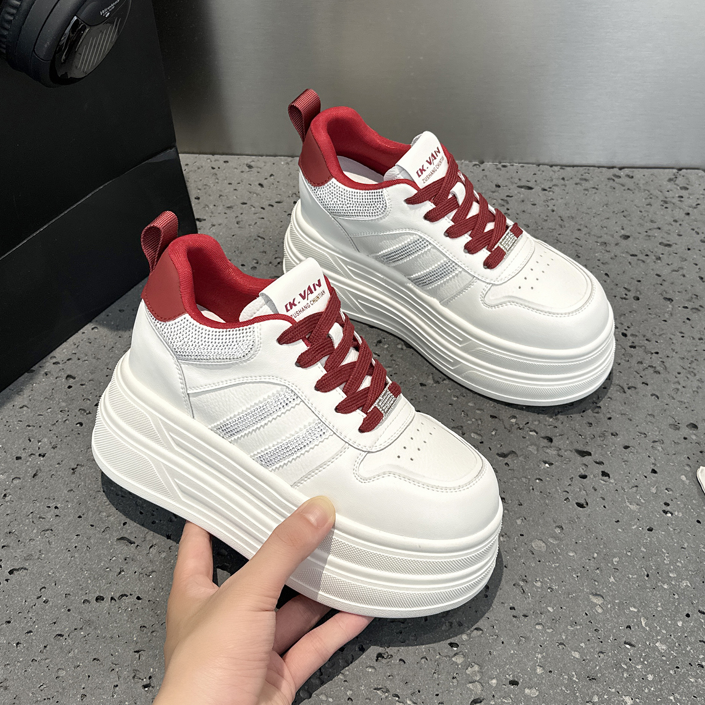 真皮内增高小白鞋女2025春秋季新款百搭水钻厚底松糕超火休闲板鞋