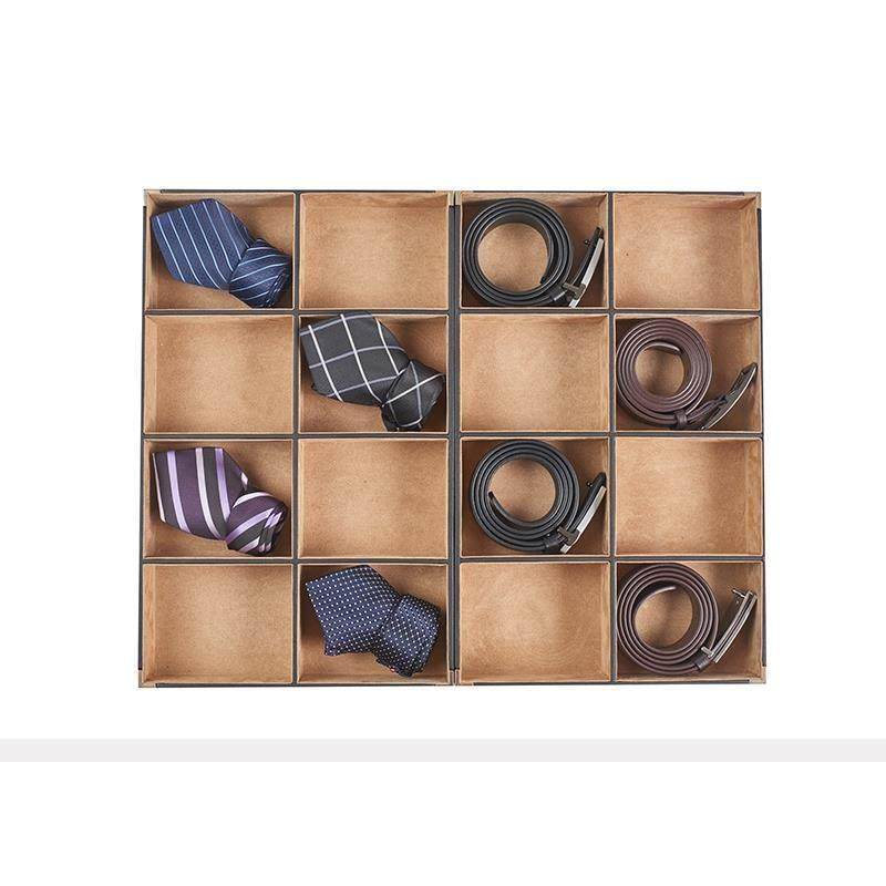 家用抽屉式领带精致收纳盒皮带腰带PU皮革内绒首饰格分隔盒子轻奢