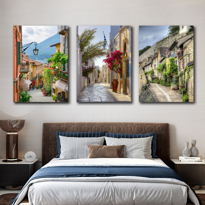 现代简欧风景客厅装饰画玄关地中海田园无框挂画卧室墙面壁画