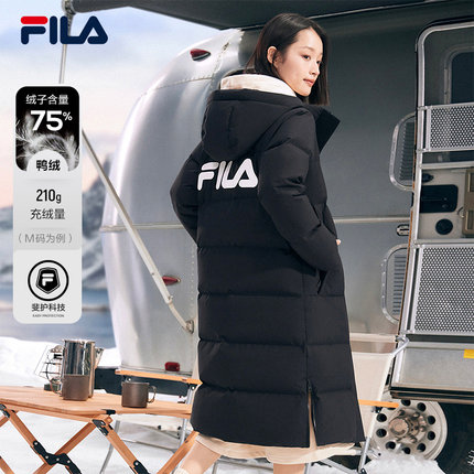 FILA 斐乐女子羽绒服秋冬加厚连帽拉链长款防泼水防污保暖外套女