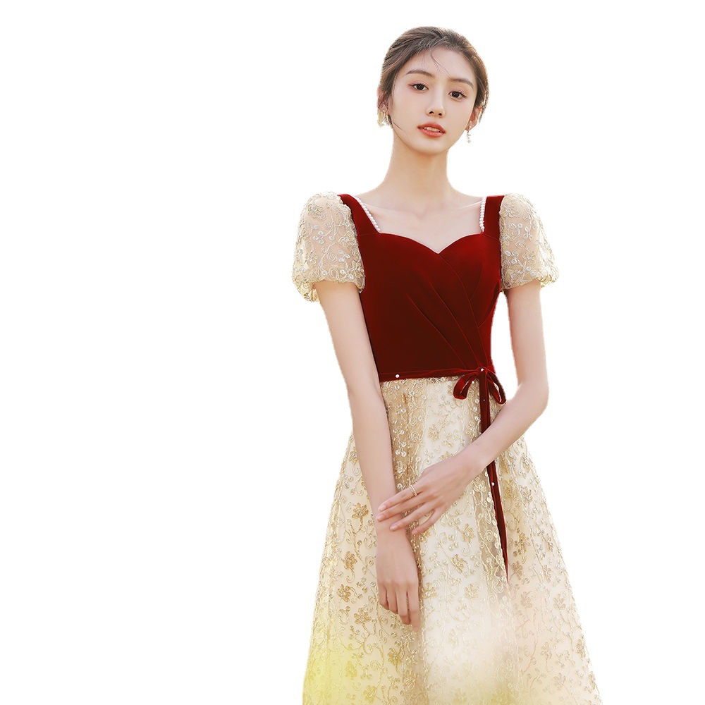 敬酒服新娘2025新款春夏酒红色订婚礼服回门敬酒服日常礼服