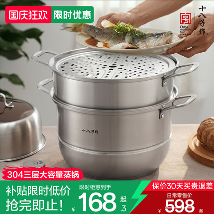 十八子作蒸锅家用304三层大容量不锈钢蒸笼煮包子电磁炉燃气通用