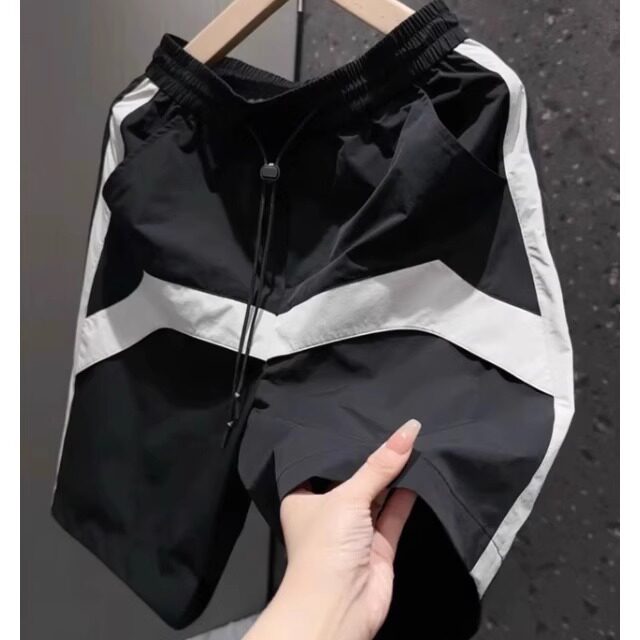 2025夏季新款男士休闲短裤宽松直筒速干外穿沙滩裤美式拼色五分裤