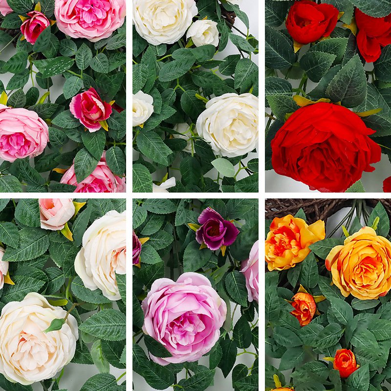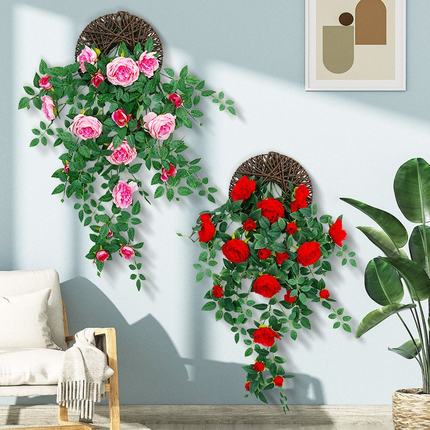 仿真玫瑰花藤吊兰室内奥斯丁玫瑰壁挂橱窗阳台装饰绿植假花藤条
