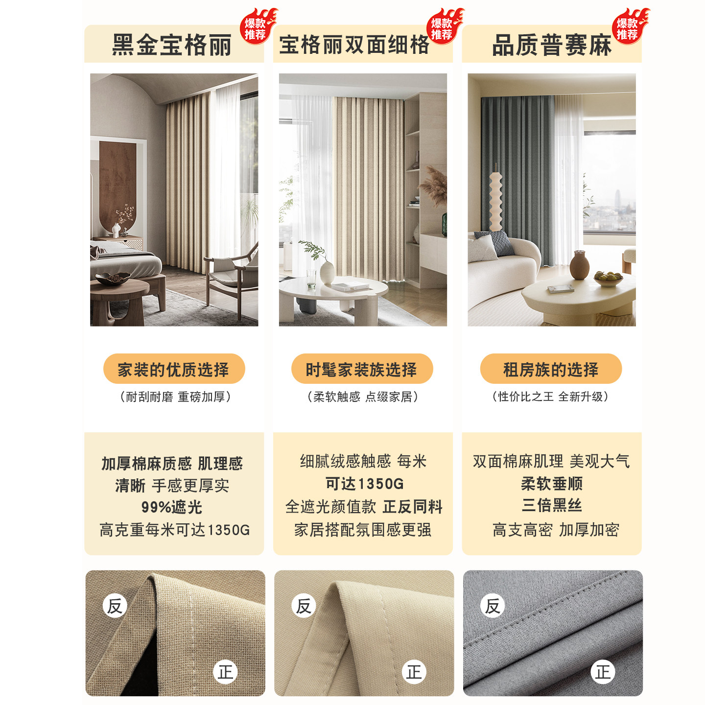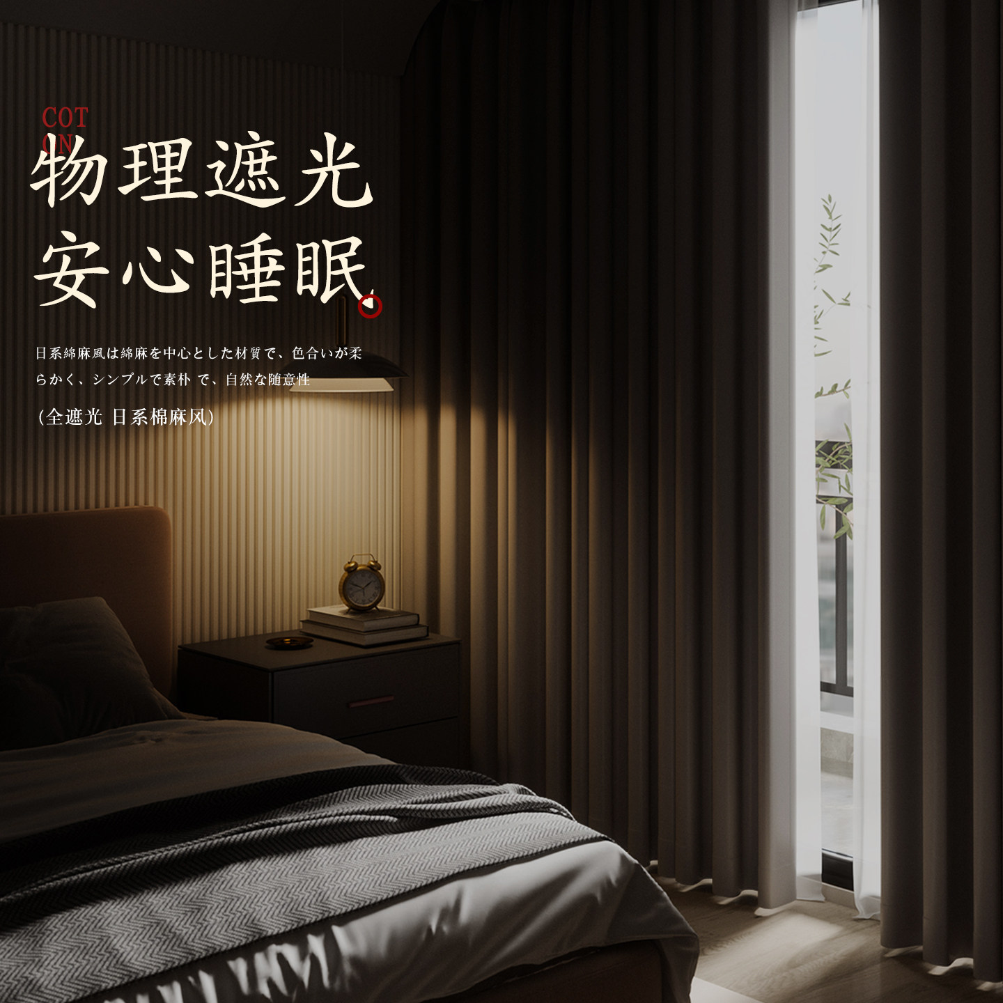 全遮光卧室隔音窗帘2025新款高级感防晒遮阳帘棉麻风客厅阳台定制