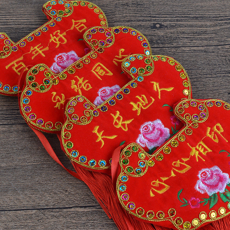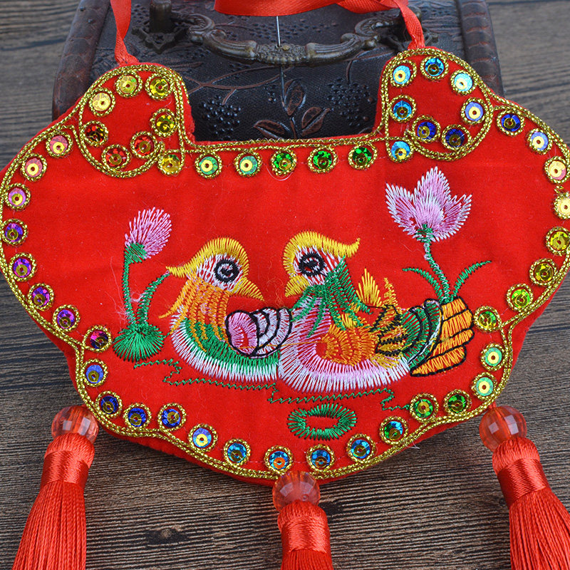 订婚锁同心锁挂饰刺绣鸳鸯锁龙凤婚庆长命锁情侣随身挂脖荷包空袋