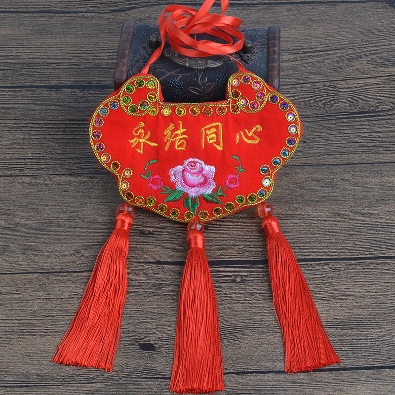 结婚订婚同心锁双面刺绣鸳鸯龙凤