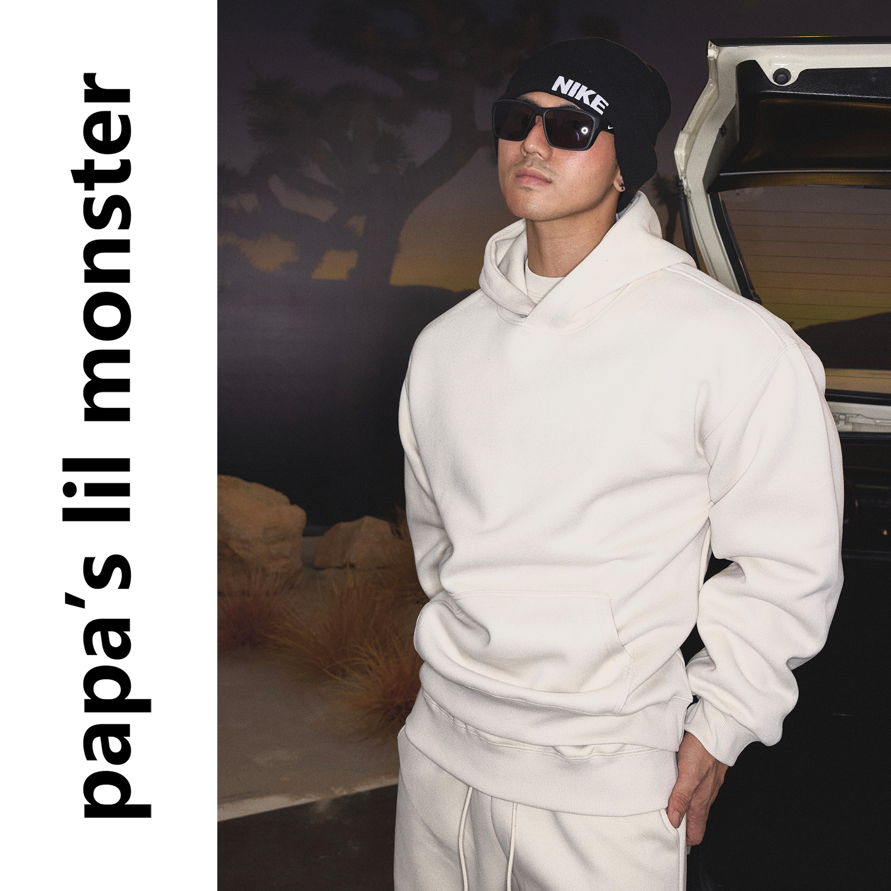 PAPASLILMONSTER【多色款式】重磅基础款纯色宽松连帽套头卫衣男