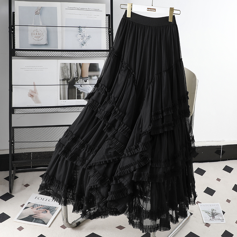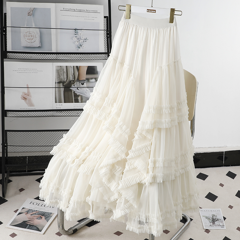法式蕾丝半身裙重工蛋糕裙女秋冬高腰网纱蓬蓬裙A字裙长裙纱裙子