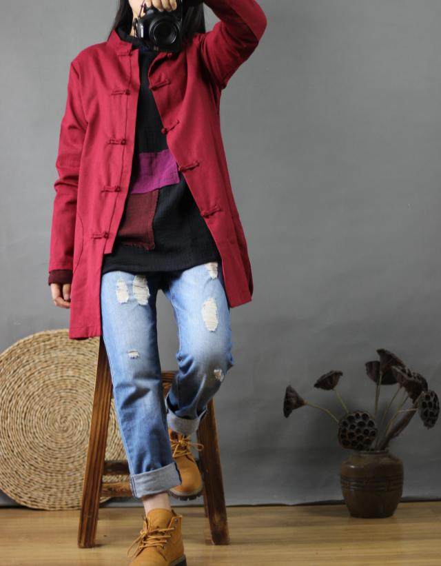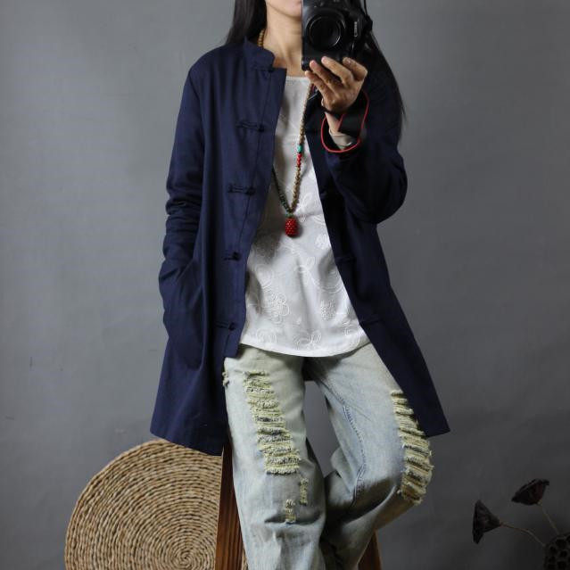 棉麻外套女 中式盘扣复古民族风中长款文艺禅意薄风衣开衫