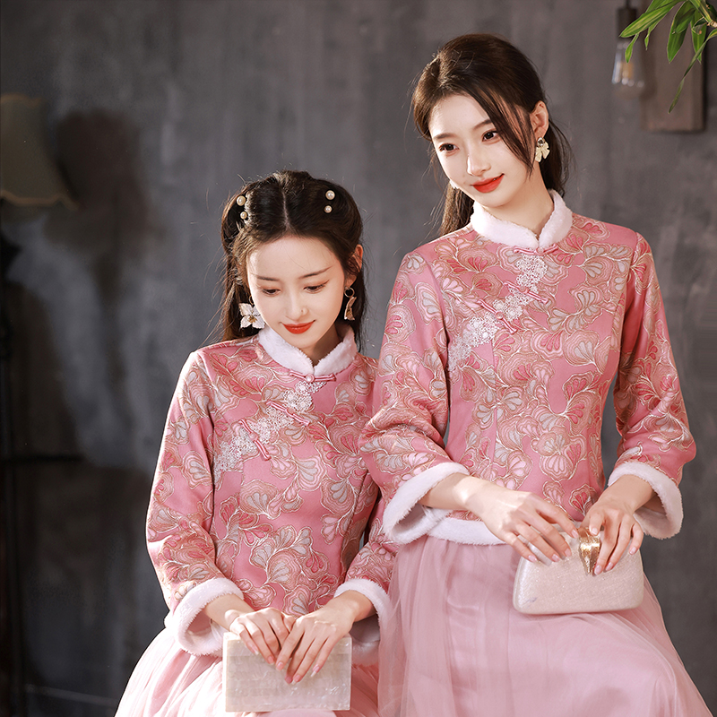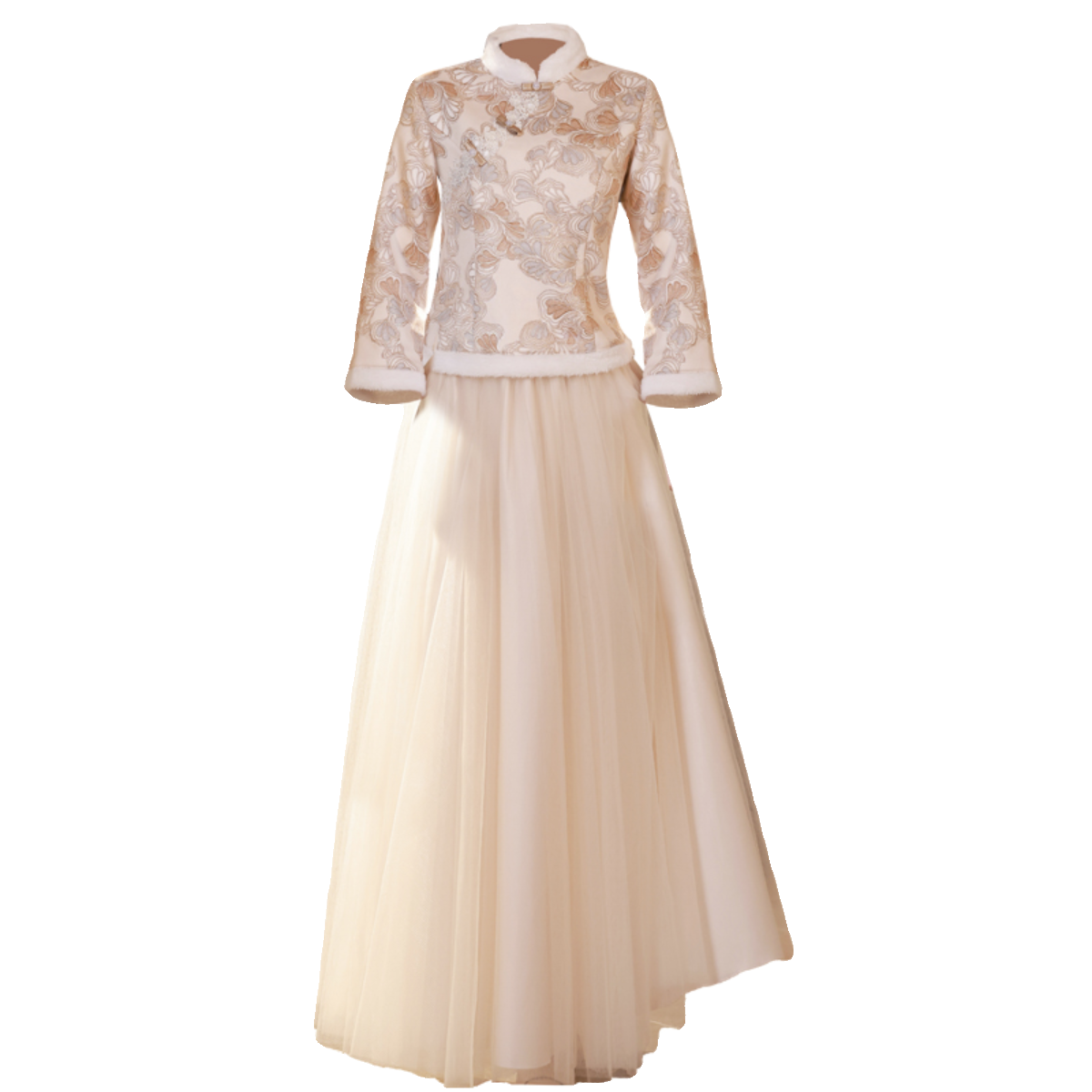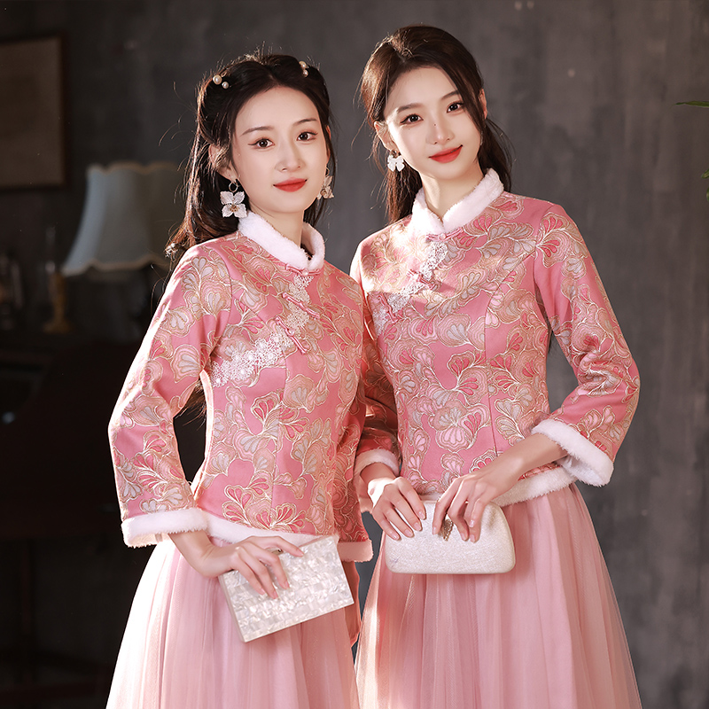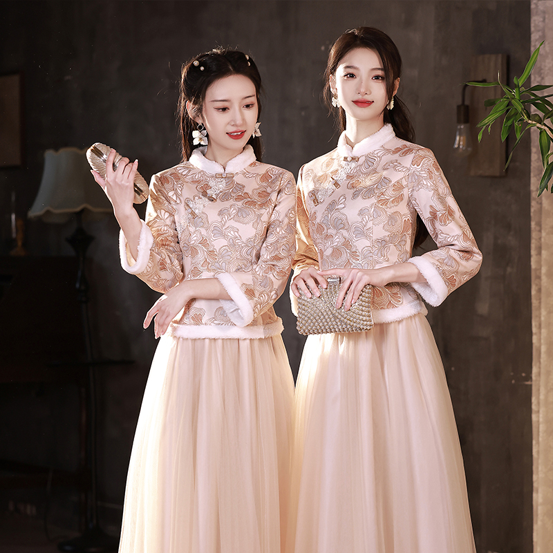 中式伴娘服女夏季2025新款旗袍婚礼服小个子长袖保暖姐妹裙伴娘团