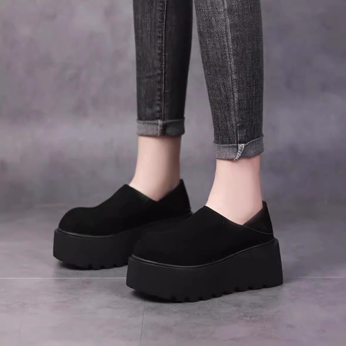 跨境勃肯鞋女秋冬外穿2025年新款百搭网红复古松糕鞋一脚蹬增高单