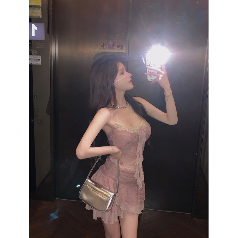 辣妹针织吊带上衣性感半身短裙子甜辣修身套装设计感女夏季两件套