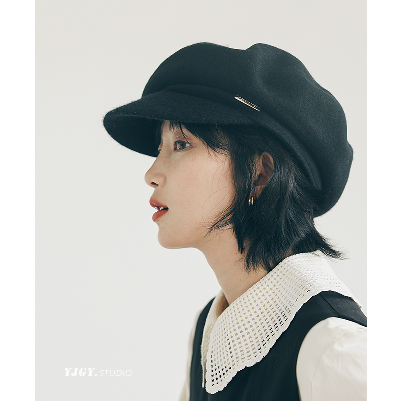 印计谷羽 羊毛揪揪报童帽女秋冬季日系文艺百搭鸭舌帽显脸小帽子
