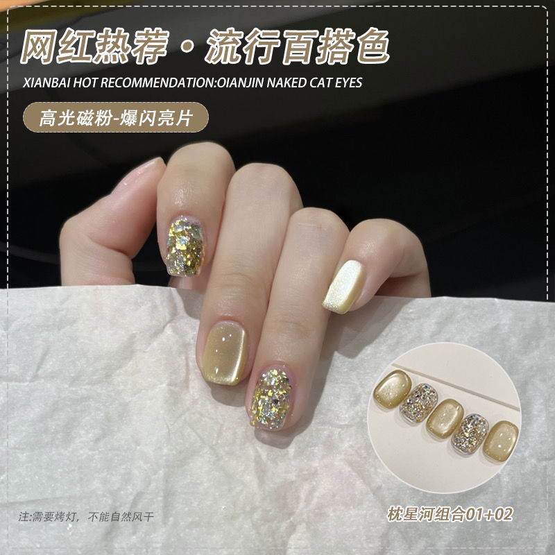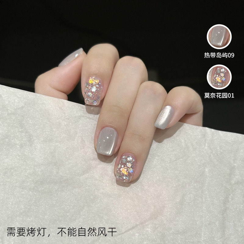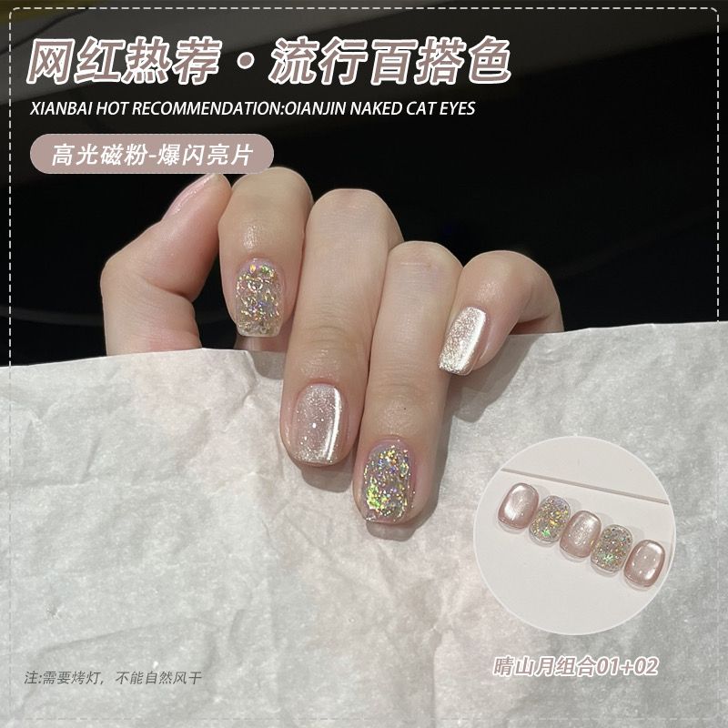 玫瑰豆沙爆闪亮片猫眼指甲油胶2025年新款网红显白套装美甲店专用