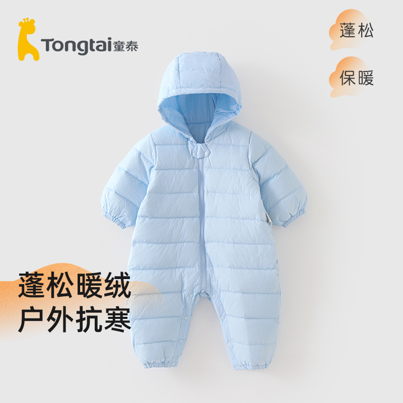童泰婴儿羽绒服宝宝连体衣哈衣冬季儿童可爱纯色白鸭绒保暖外出服