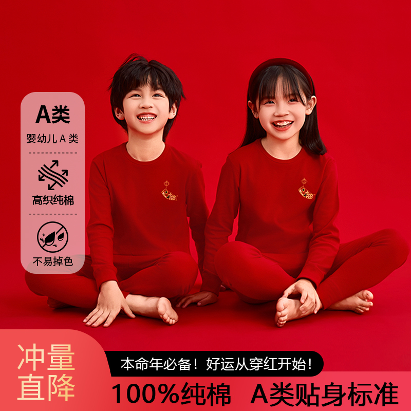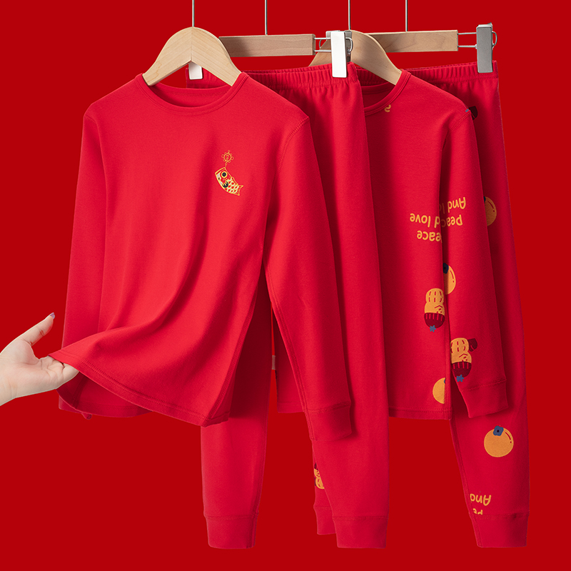 叮当猫儿童纯棉保暖内衣套装女童男童秋衣秋裤本命年红色睡衣母婴