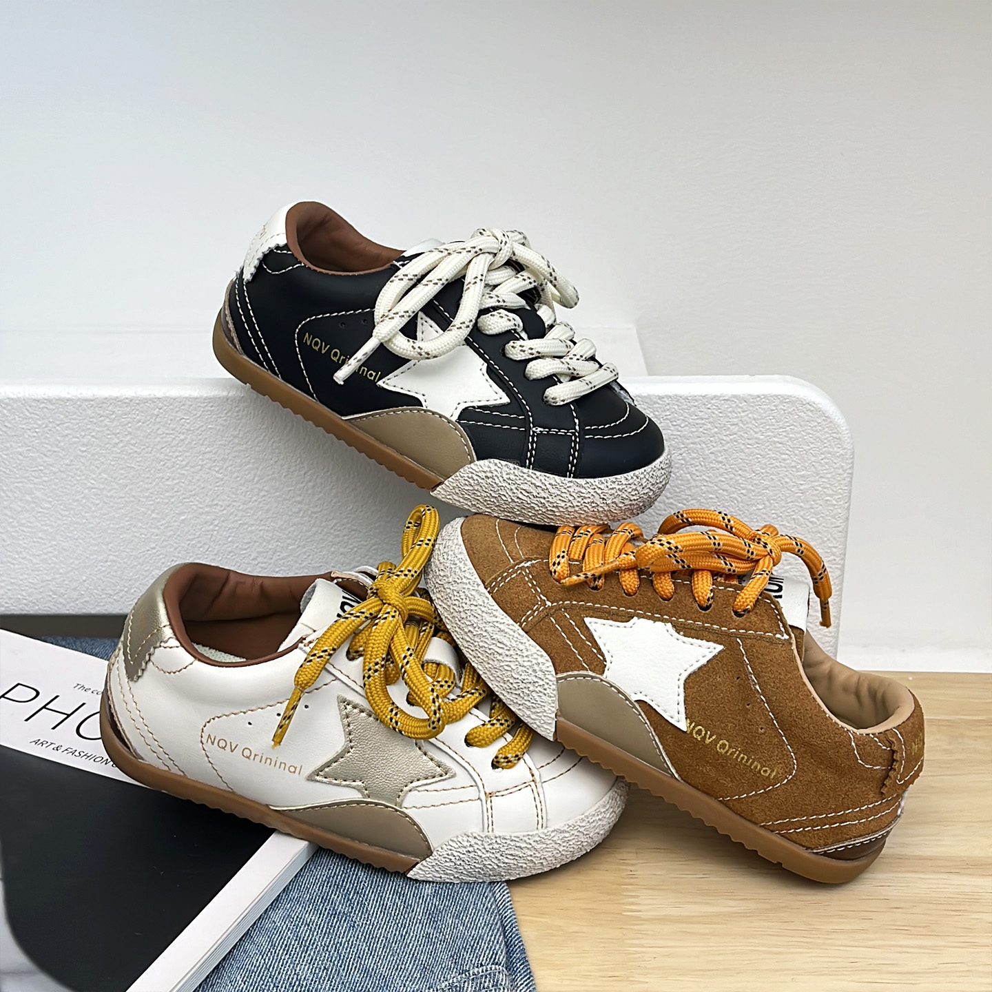 星星板鞋低帮男女童耐磨好打理防滑韩版时尚中大童皮面魔术贴鞋子