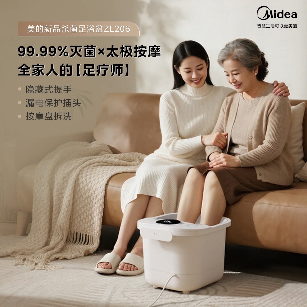 美的泡脚桶加热恒温足浴盆杀菌自动按摩器家用电动智能高深洗脚桶