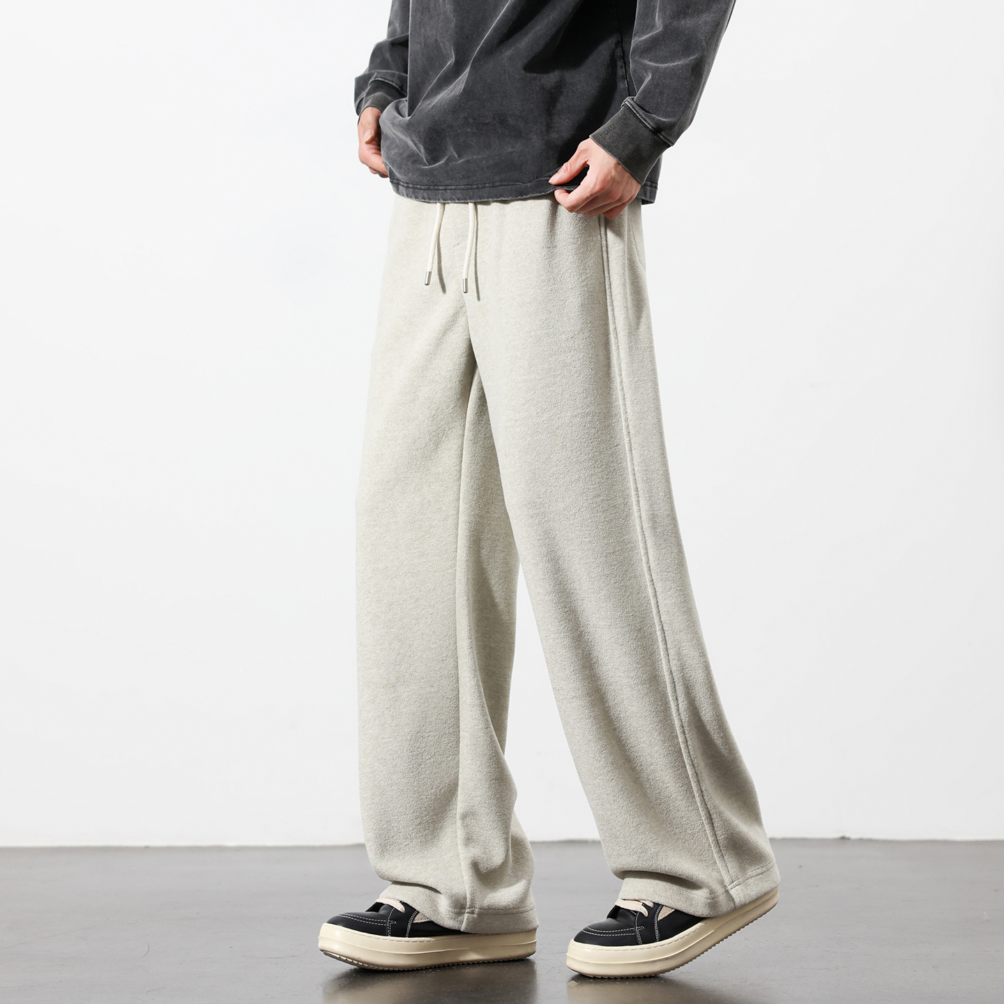 秋冬加厚针织休闲裤男宽松阔腿垂感直筒裤潮流重磅仿羊绒保暖卫裤