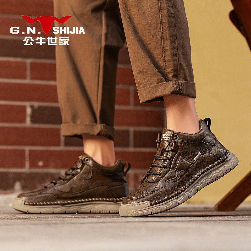 公牛世家男鞋冬季潮流百搭英伦风休闲皮鞋男士百搭运动厚底工装靴