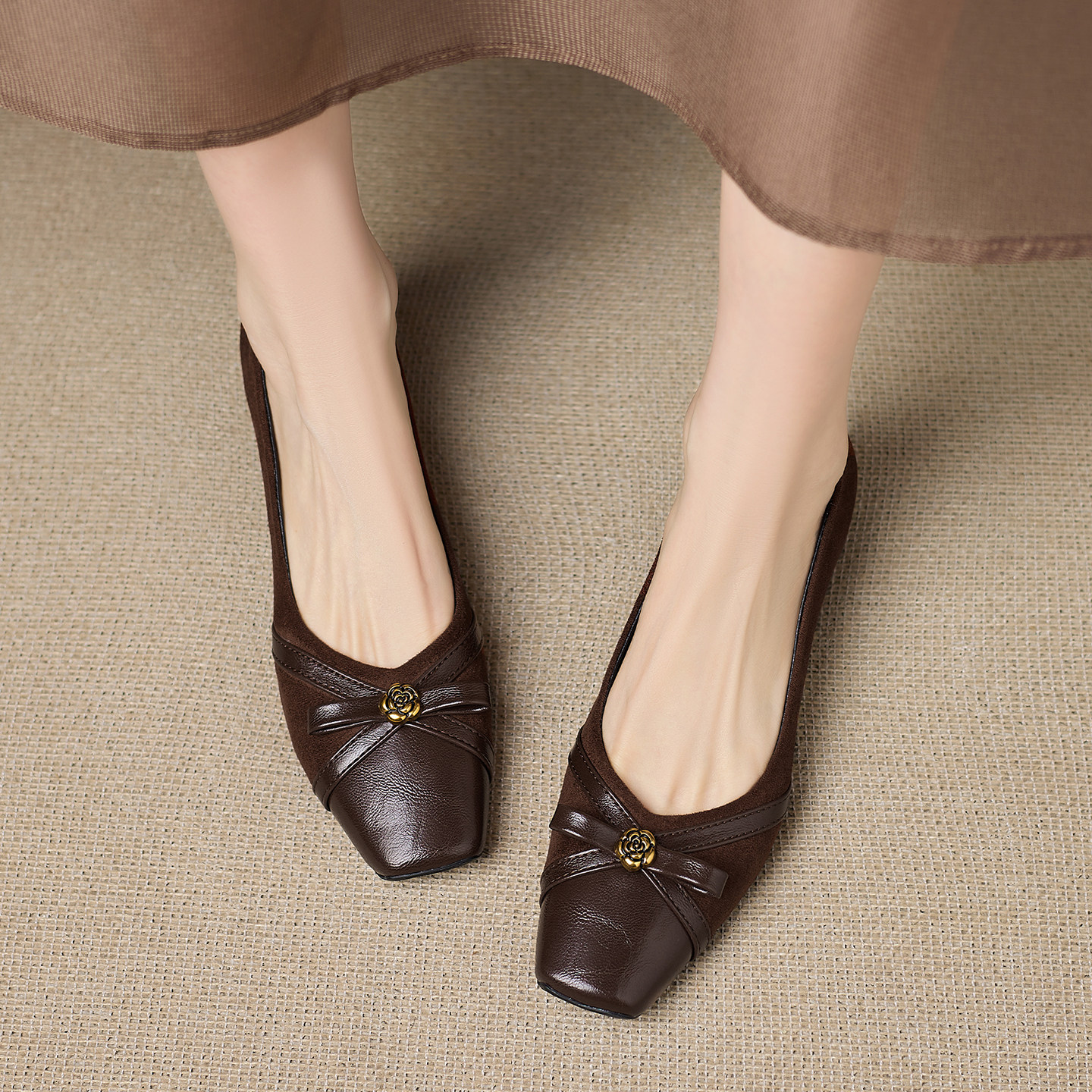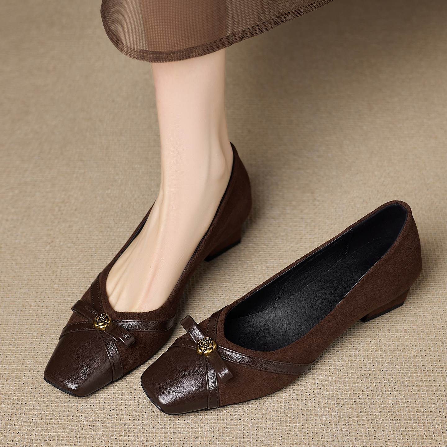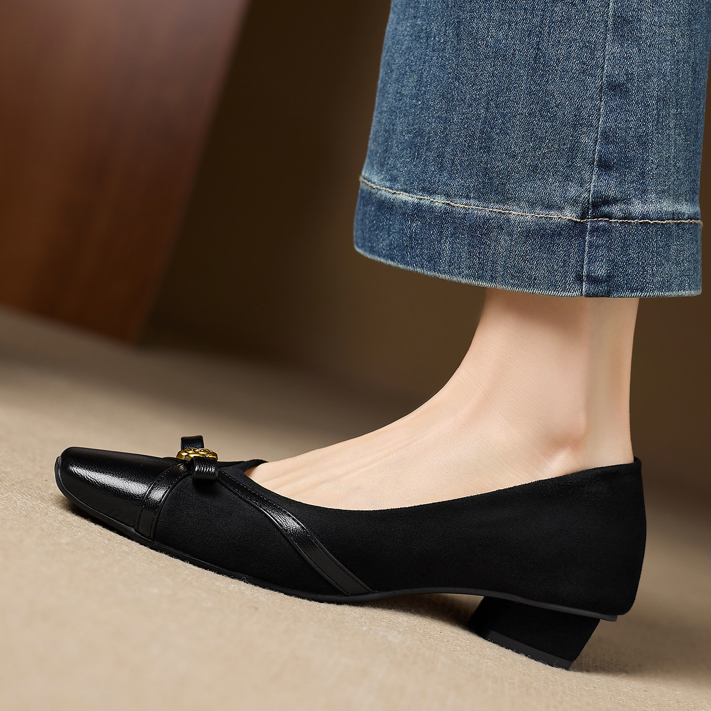 Dale黛迩~ 法式复古风方头粗跟单鞋女蝴蝶结气质通勤玛丽珍鞋大码