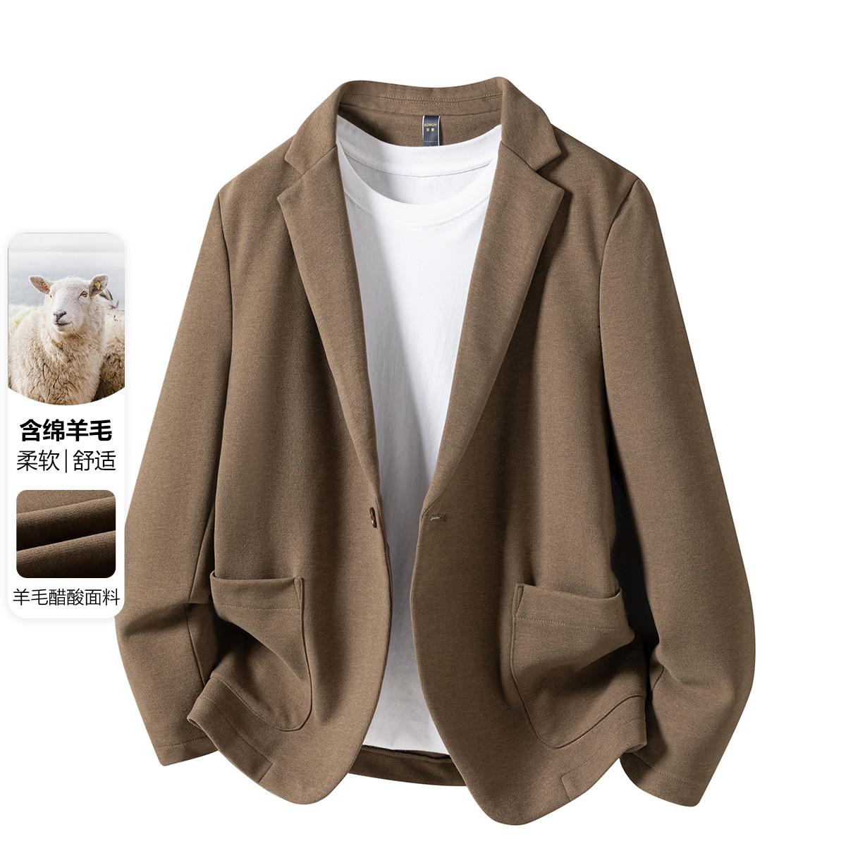 罗蒙秋冬含羊毛醋纤仿羊驼绒保暖单西外套男士商务休闲小西装西服