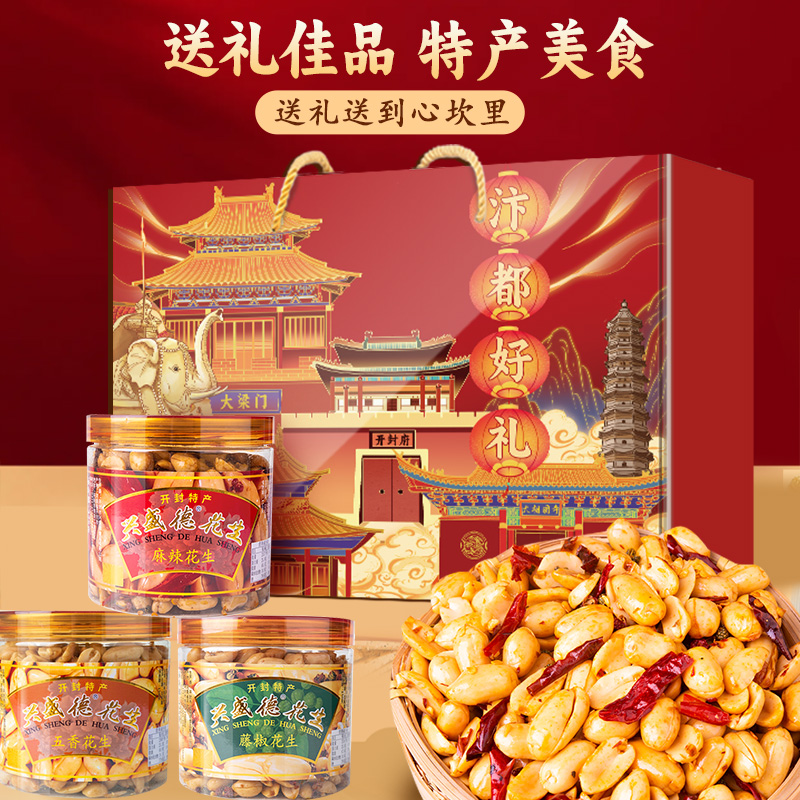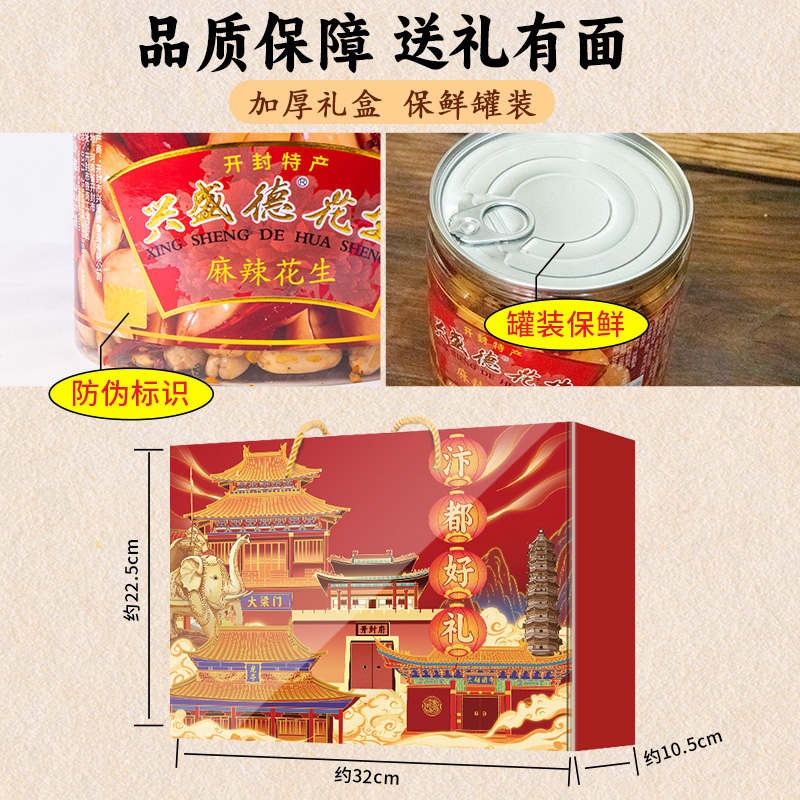开封官方旗舰店兴盛德麻辣花生礼盒河南特产五香花生米下酒菜零食
