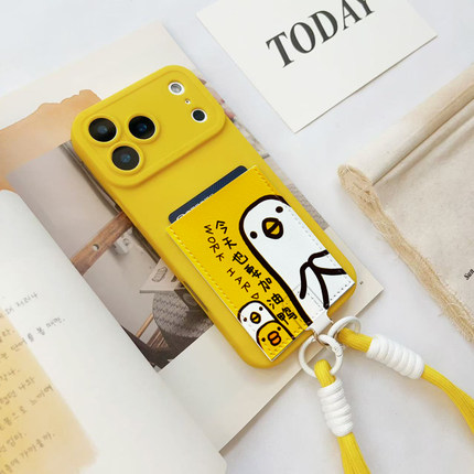 加油鸭可爱挂绳手机壳带卡包iPhone17pro苹果17promax旅游装卡身份证16promax独立皮质卡套插卡15/14/13/12软