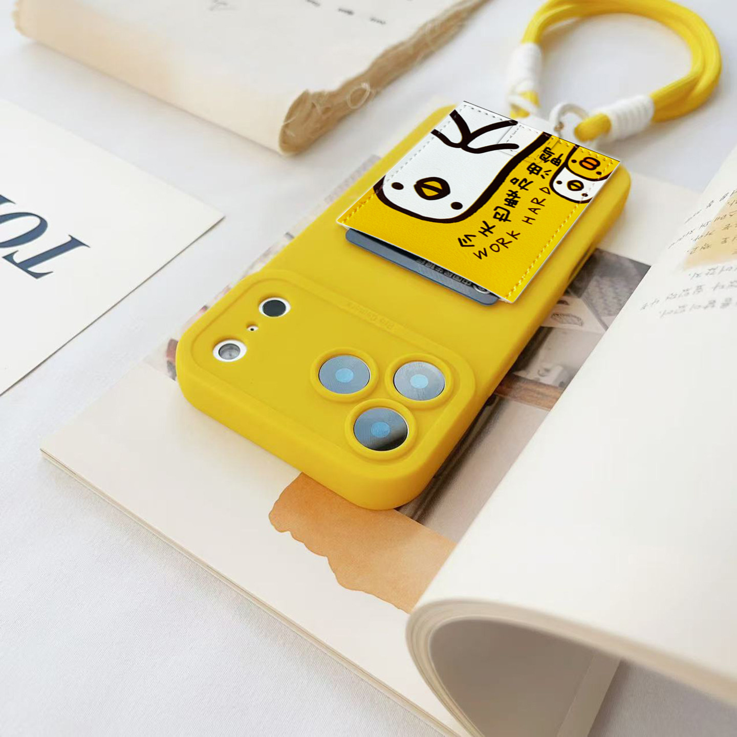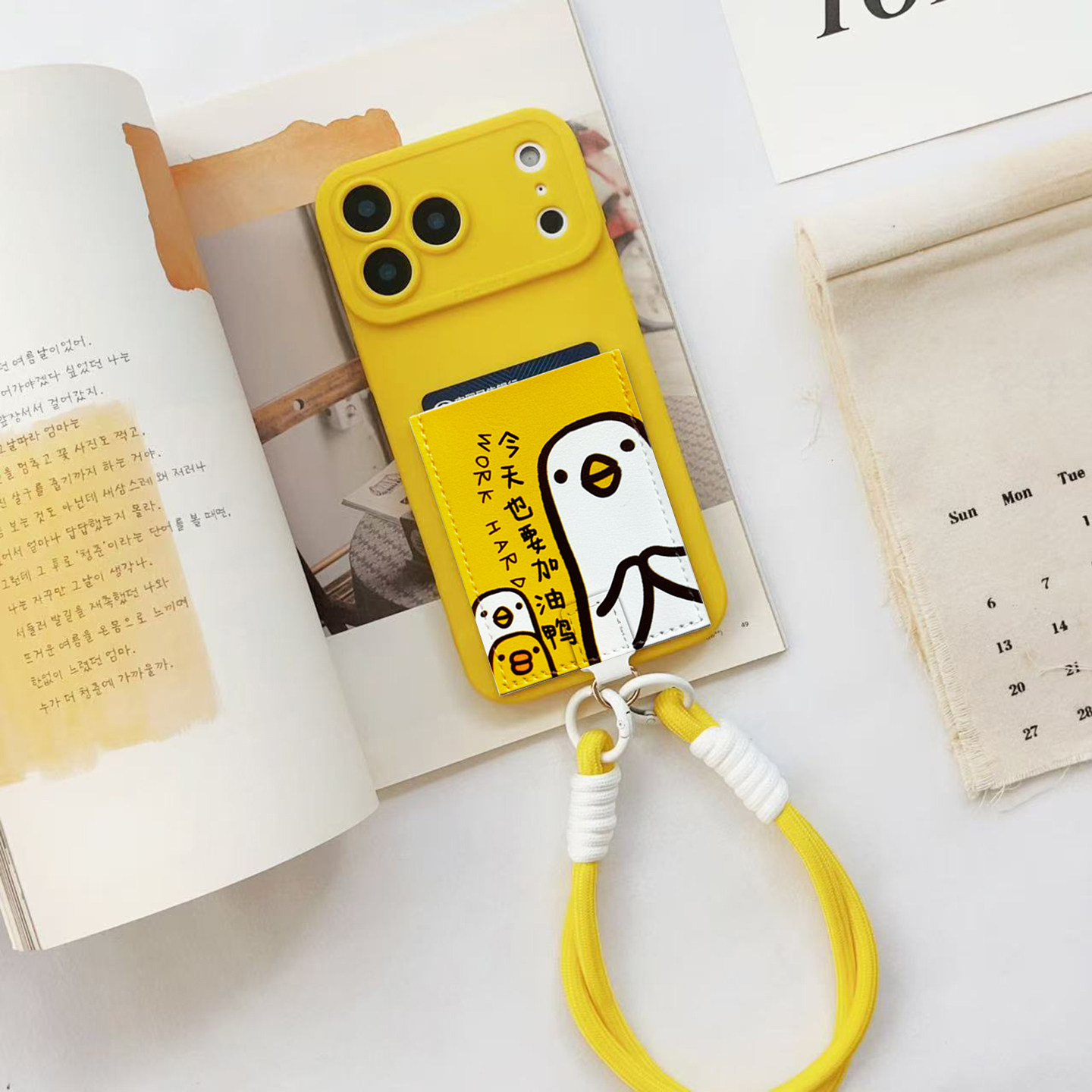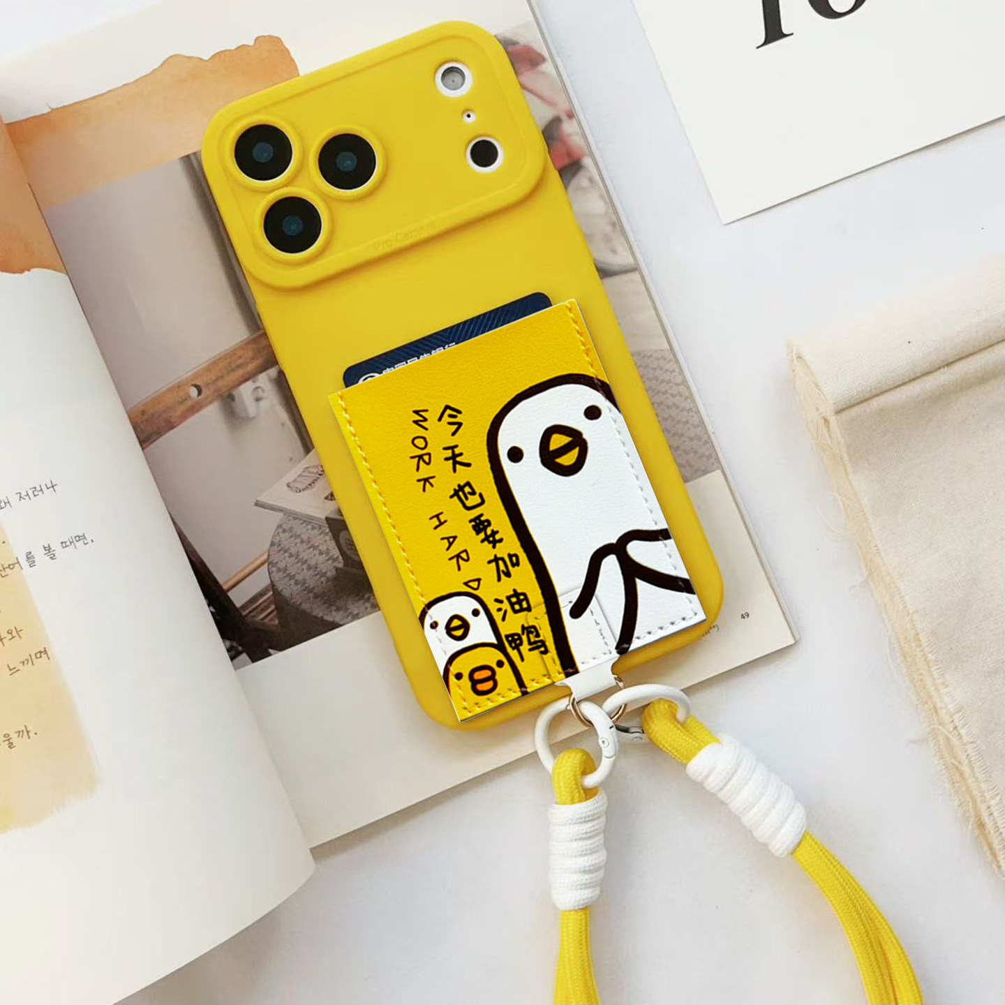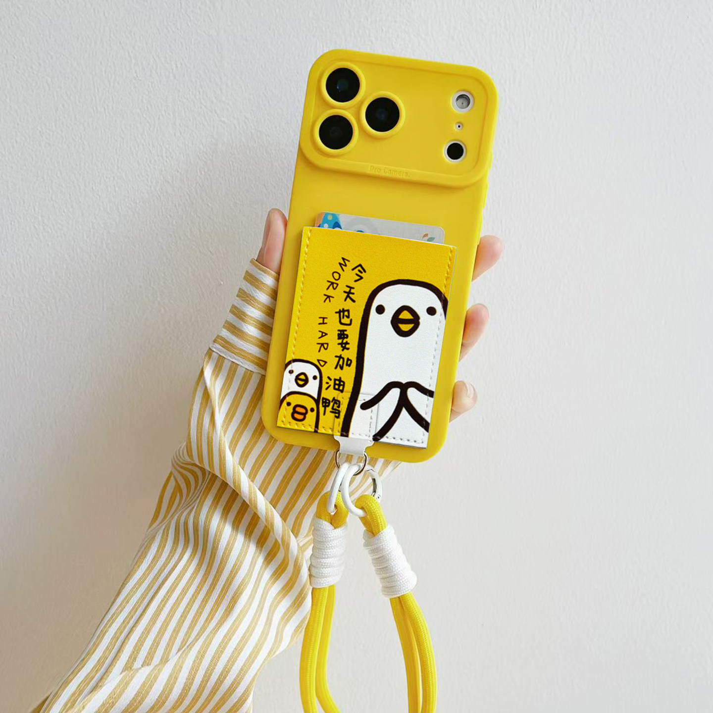 加油鸭挂绳手机壳带卡包旅游装卡