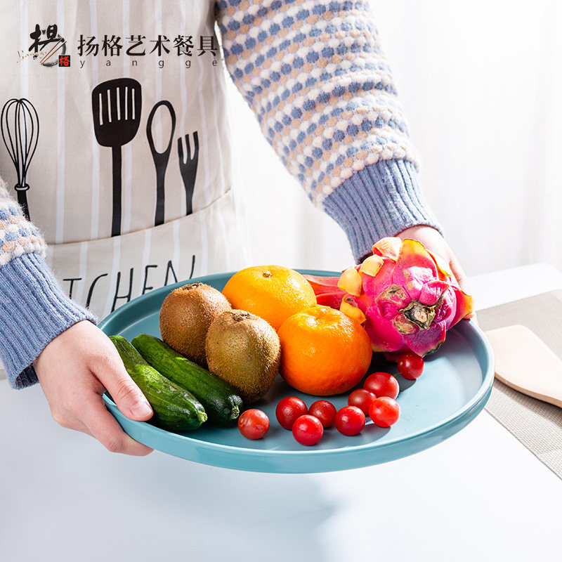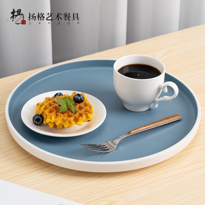 扬格北欧风家用托盘客厅水杯茶盘欧式圆形托盘创意简约水果盘平盘