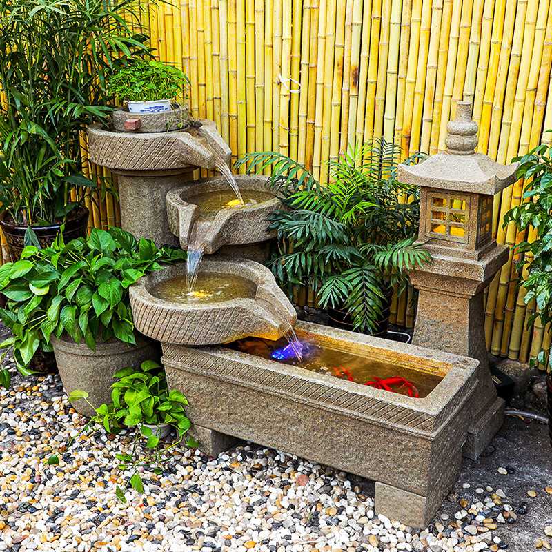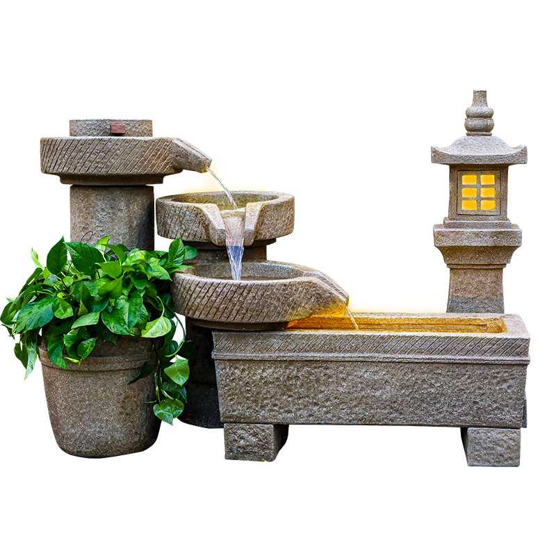 新款直销中式流水喷泉阳台造景观庭院花园石磨循环水装饰户外鱼池