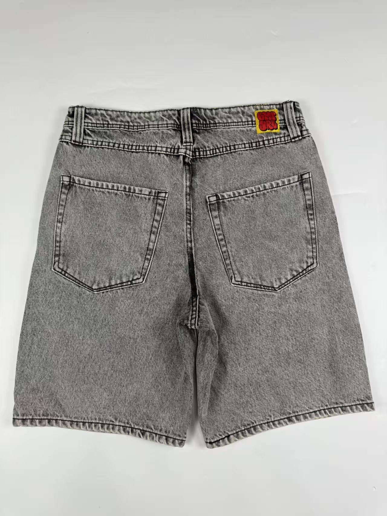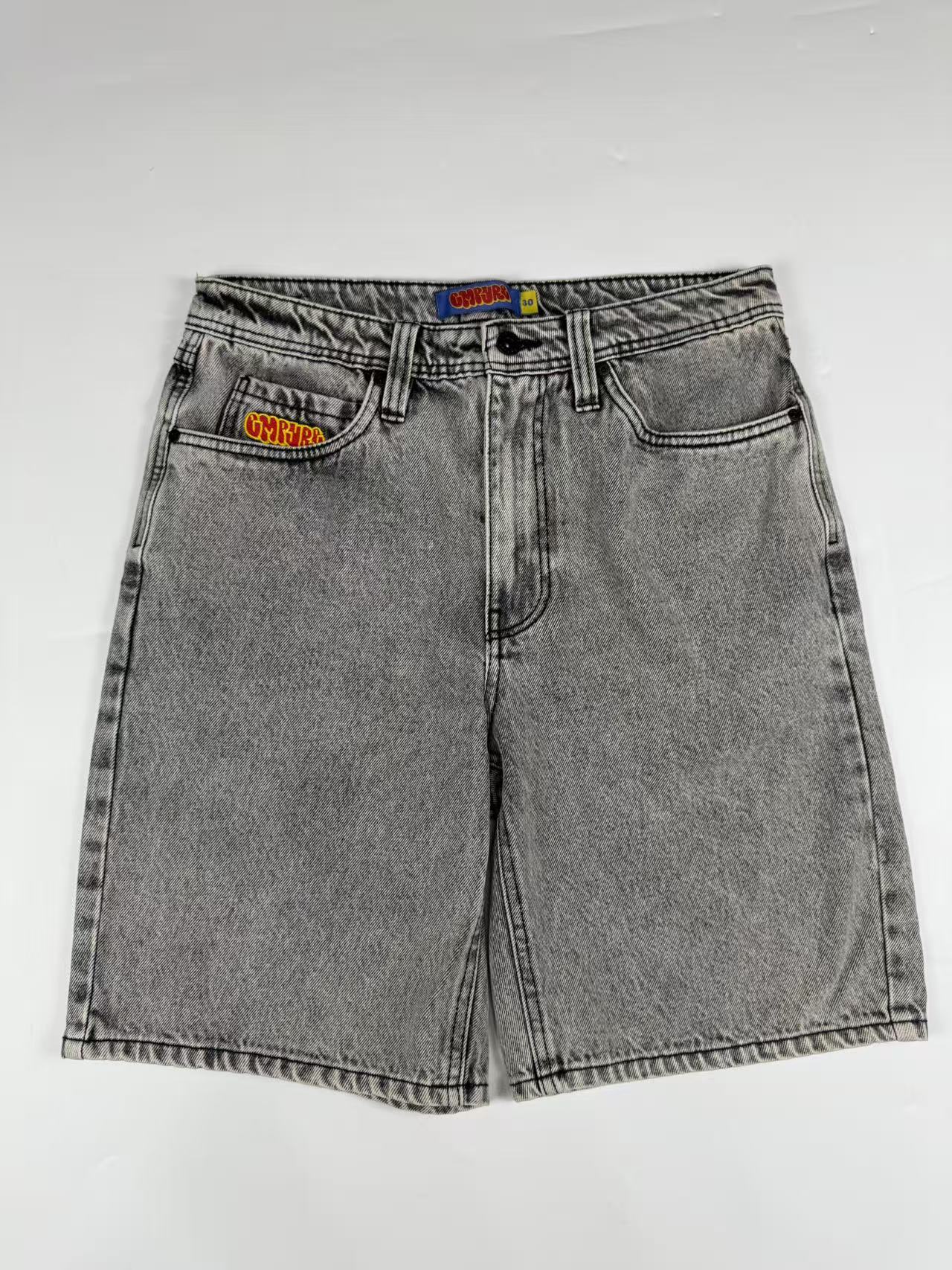 外贸男士夏季新款纯棉多兜工装牛仔短裤刺绣复古耐磨耐用五分中裤