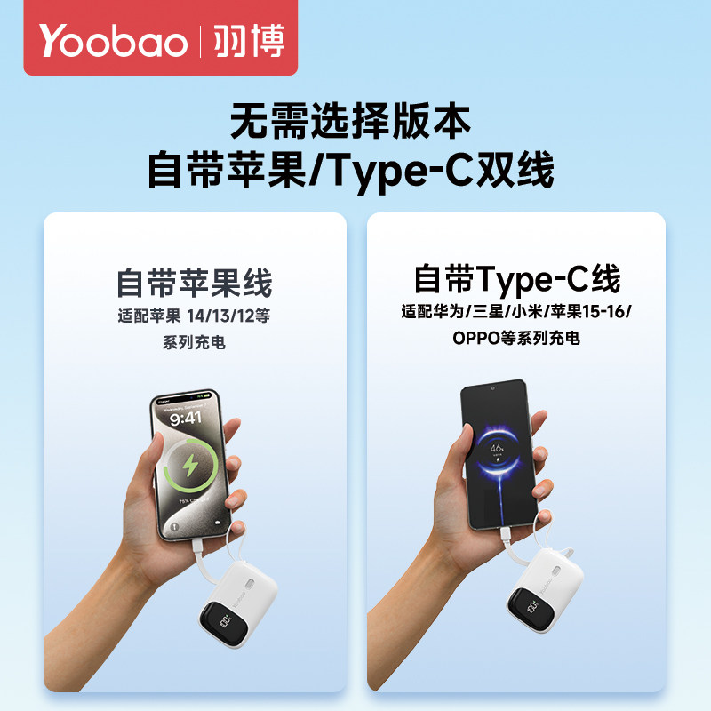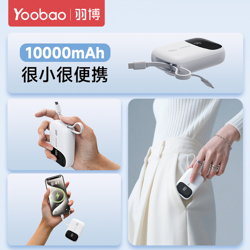 3c认证充电宝上飞机羽博10000毫安自带线小巧便携适用华为苹果17