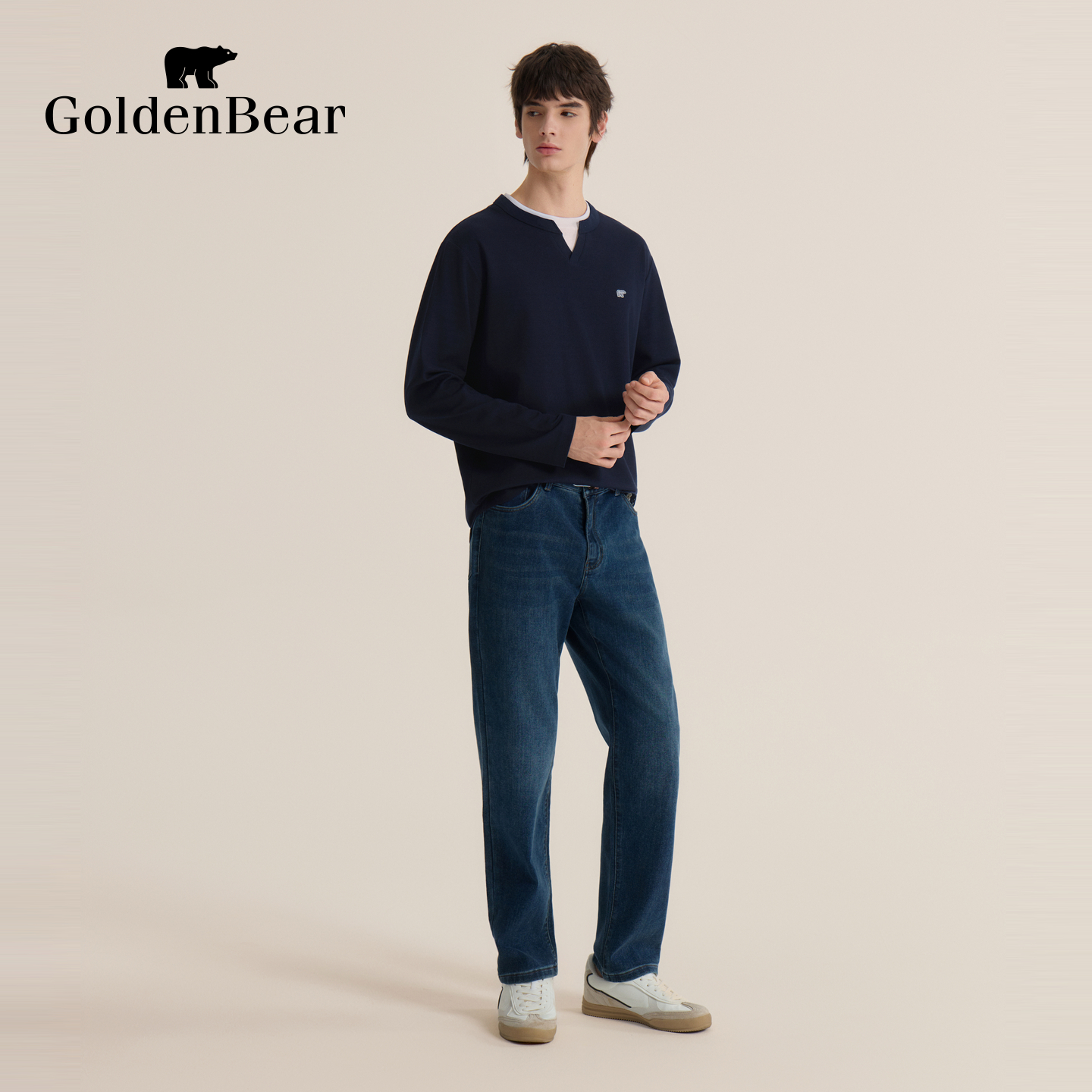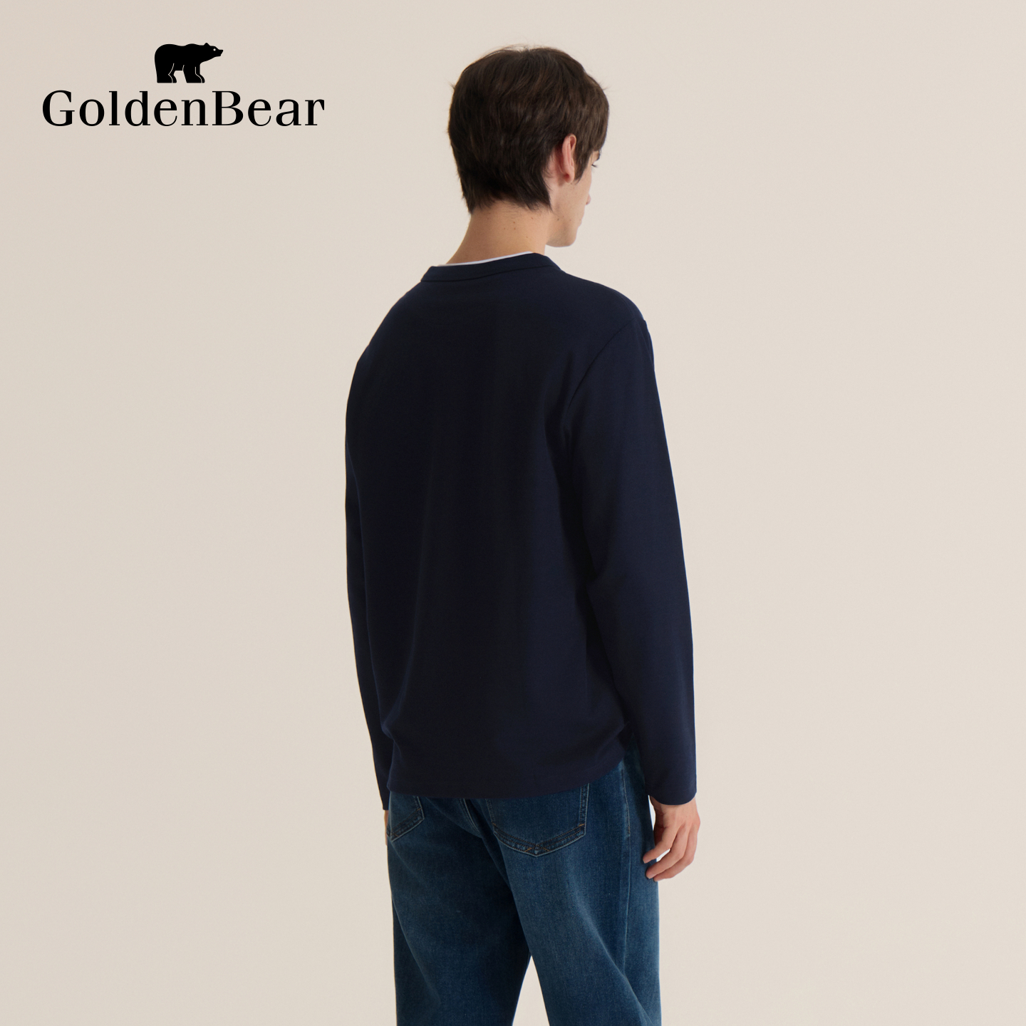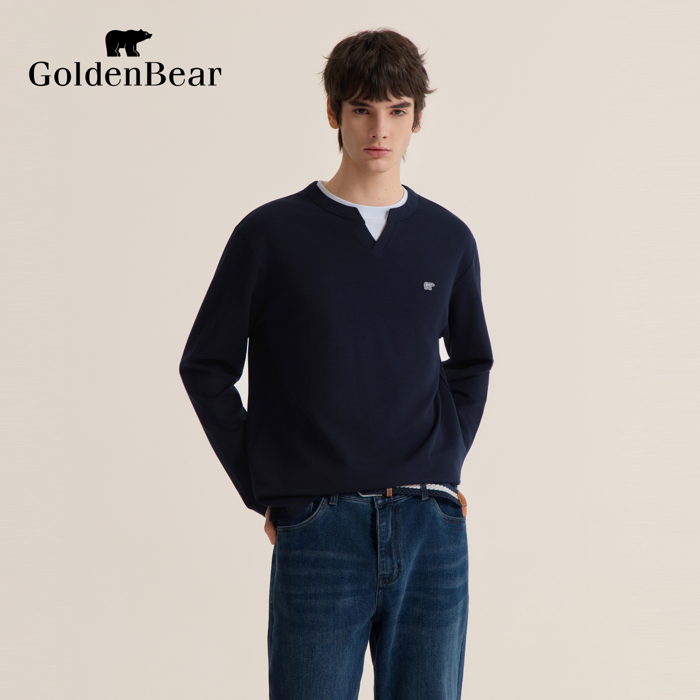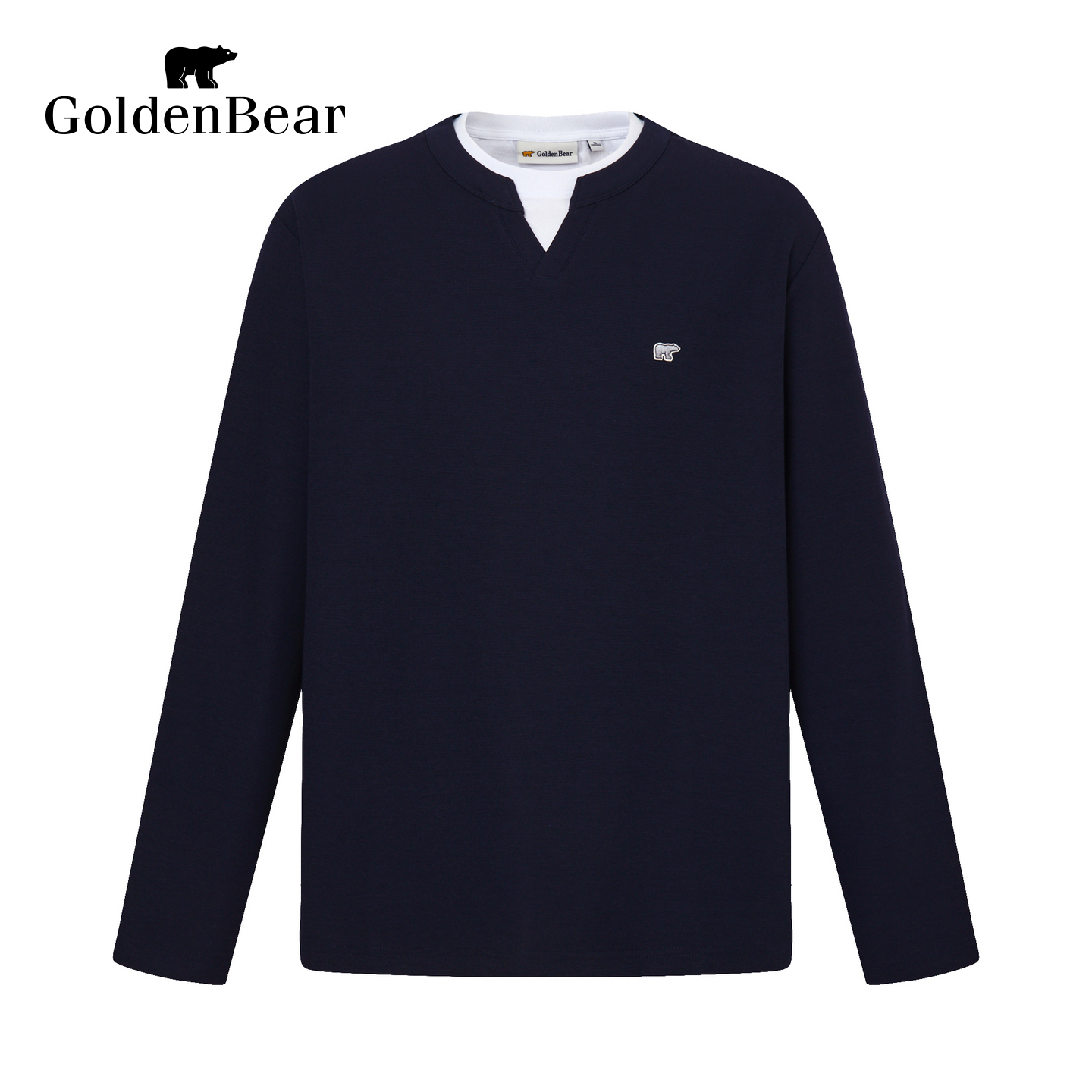 【秋季新品】GOLDEN BEAR/金熊 新款男装上衣双层领舒适长袖T恤