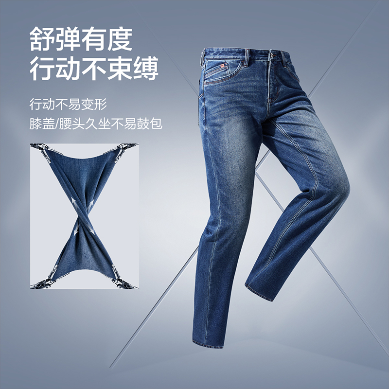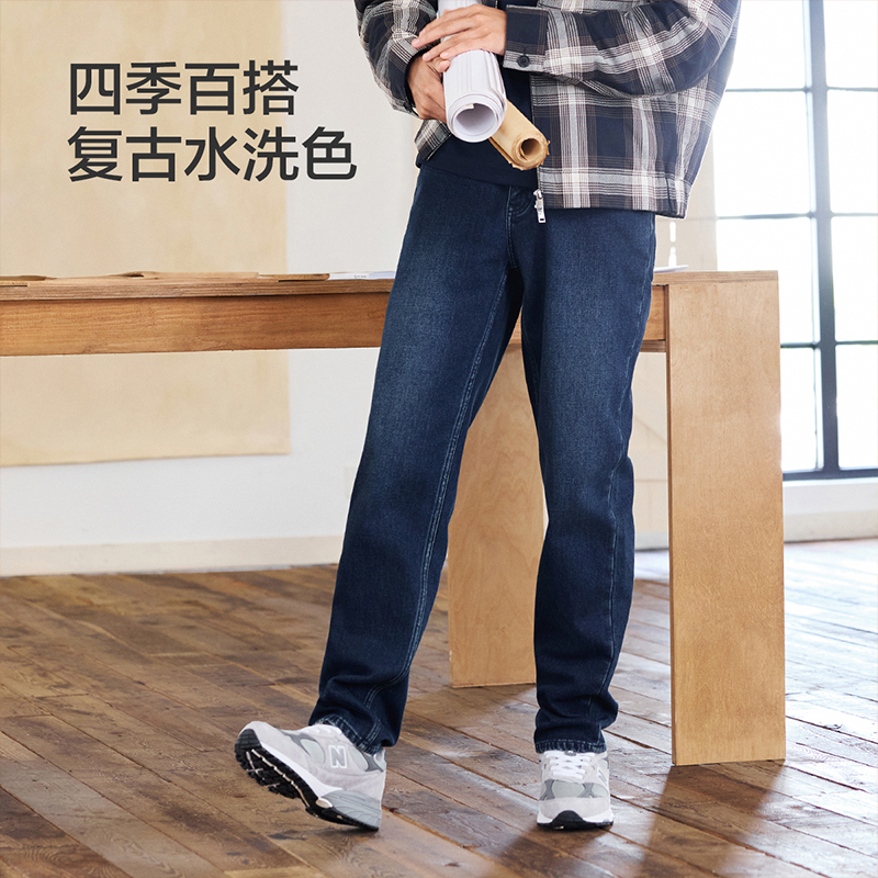 【阔腿牛仔裤】九牧王空气牛仔男士2025秋冬新款直筒弯刀水洗长裤