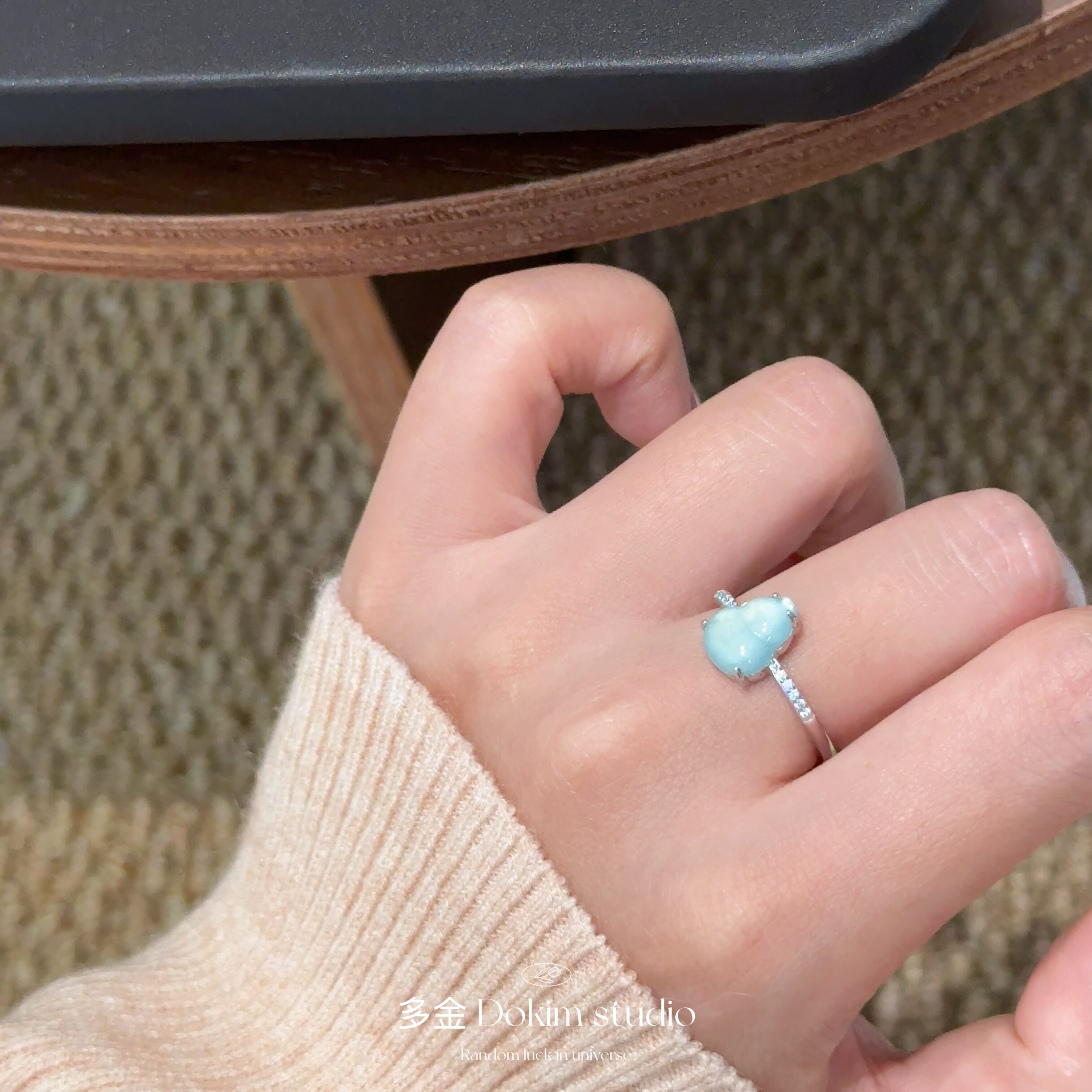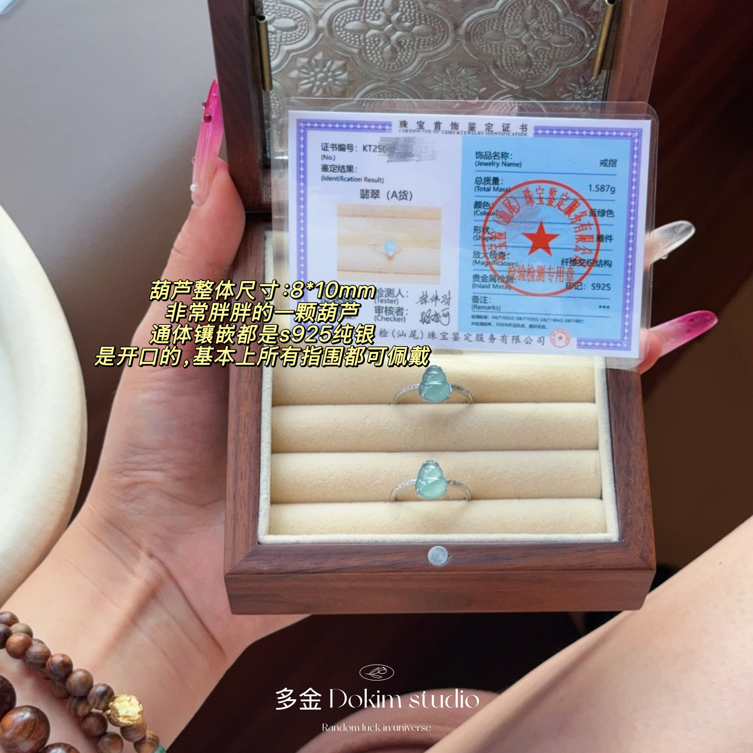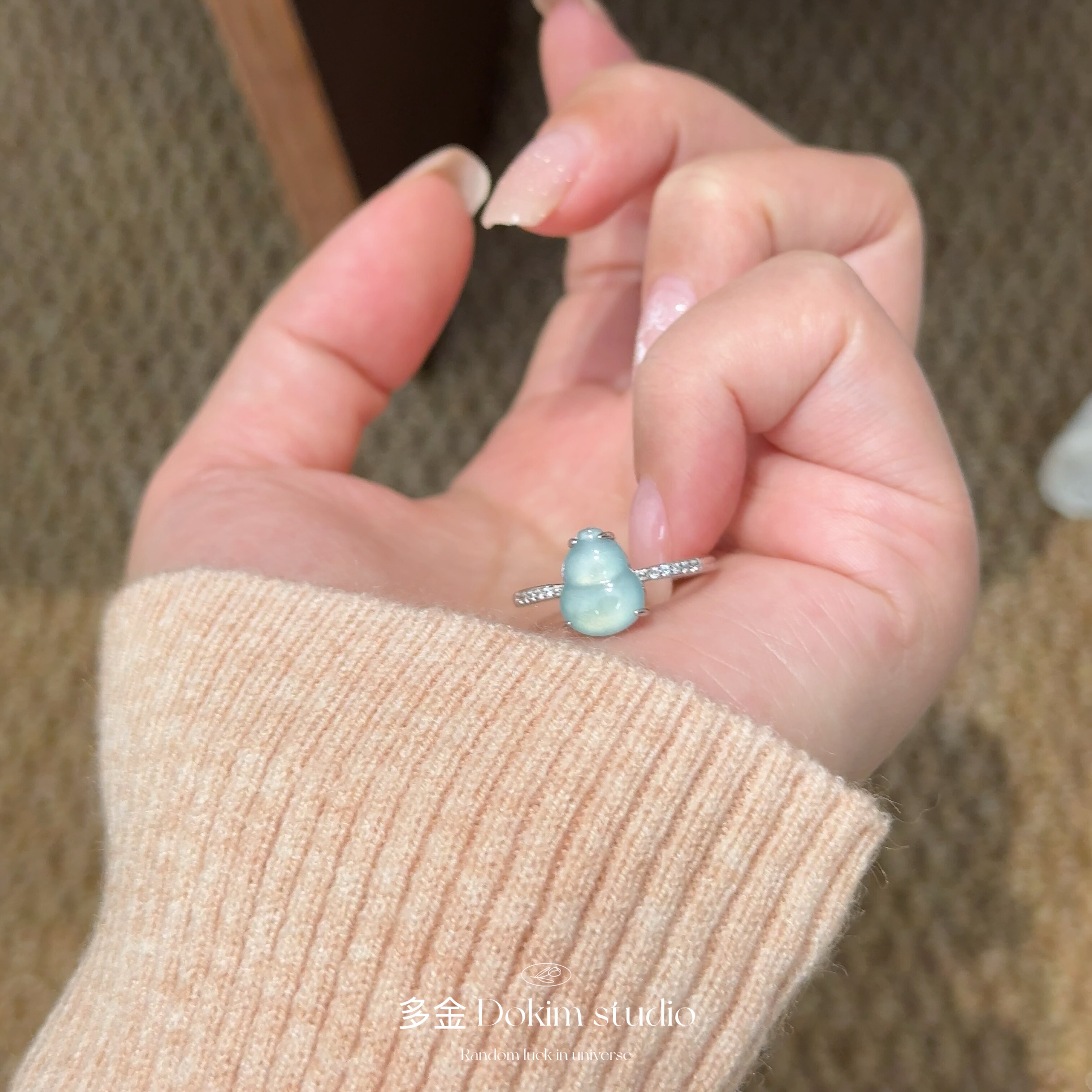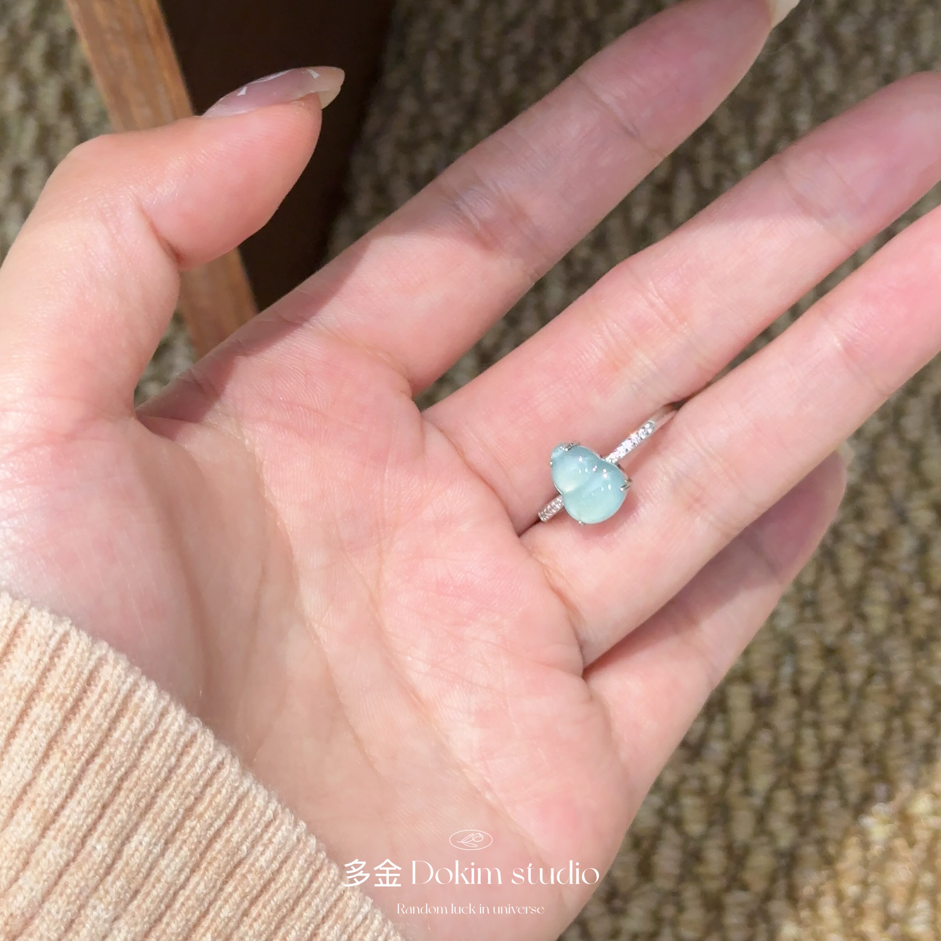 S925纯银天然A货翡翠蓝水葫芦戒指新中式显白玉石指环复古礼物